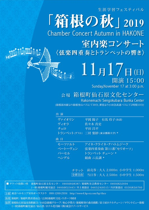 東京ハルモニア室内オーケストラによる「箱根の秋」2019 室内楽コンサート、今年も開催します!