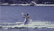 毎年1月5日に元箱根の湖上で湖水開き式が行われます。美しい富士を背に芦ノ湖上を神官が水上スキーに乗って御祓いのあと、若人が水上スキー初すべりをします。