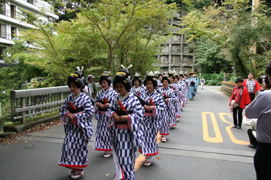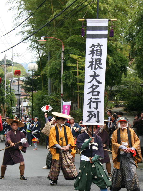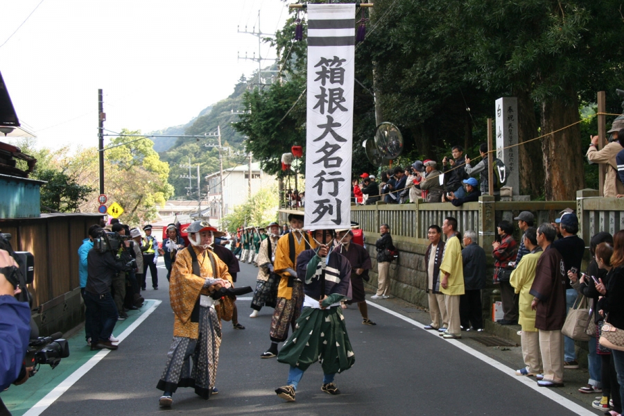 箱根では、毎年11月3日の文化の日に、「下に下に」と、毛槍を振り、総勢百七十人の大名行列が、旧東海道を練り歩く。まことに江戸時代の華やかな参勤交代をしのばせてくれる。このころは、箱根は全山紅葉に染まって美しく、紅葉狩りをかねて、毎年大勢の観光客が訪れる。箱根の大名行列の人気は、何といっても、僅か百数十年前まで、華やかな大名行列が実際に通り過ぎていった旧東海道で行われること、行列の最後を飾る長持担ぎの人足が唄う雲助唄に、往時の情緒がしのばれるからであろうか。この人気を博している箱根の大名行列は、どんなきっかけで行われるようになったのであろうか。