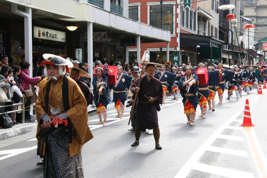 この順で、総勢70人と当時の新聞は伝えている。それでも、明治維新によって、絶えて見ることのなかった行列だけに、大変な見物人が集まった。この日の模様を、横浜貿易新報は 「この全山未曽有の懐旧的催し物は、西湘の人気を集め、小田原駅は早朝から大磯、平塚、湯河原、真鶴方面からの見物人を満載、午前中駅頭人の山を築く、という有様だった」と報じている。