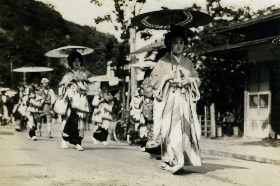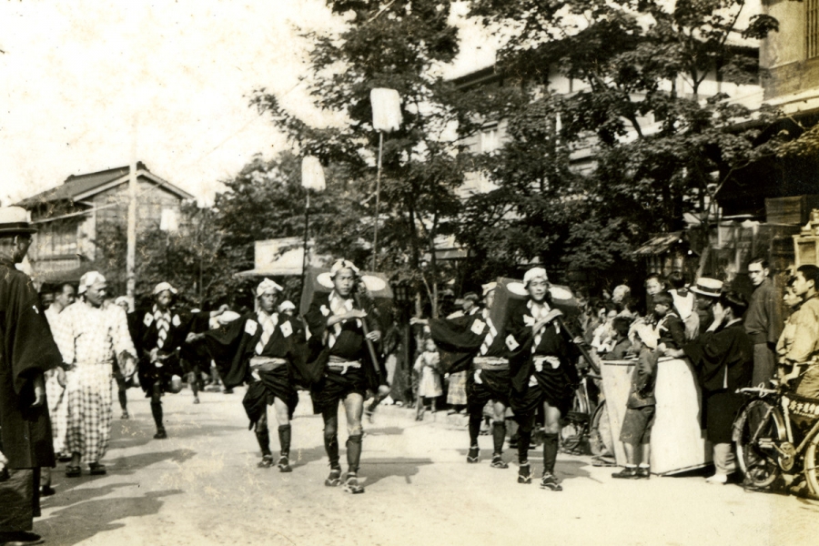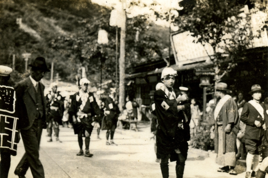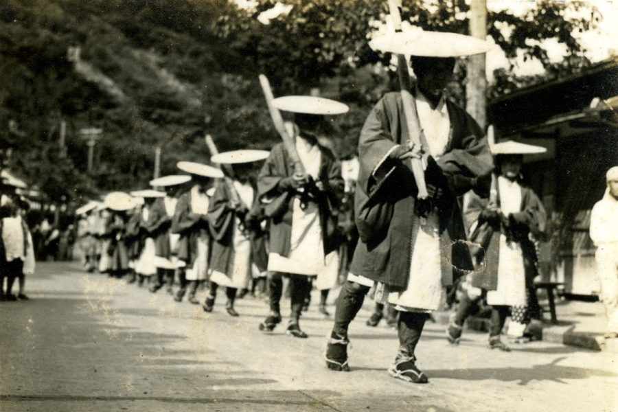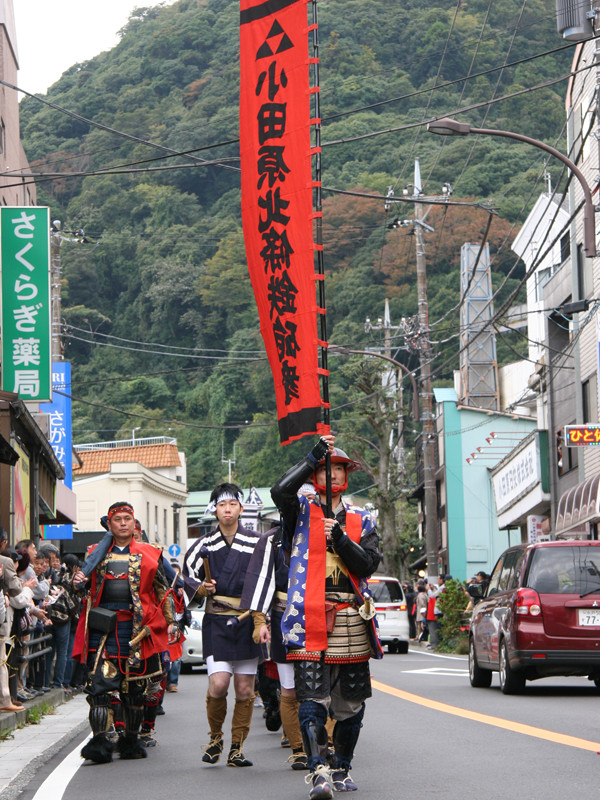 昭和二十二年五月三日、新憲法の発布を記念して、早くも戦後第一回の大名行列を行うことができた。車がほとんどなかった時代なので、国道1号線を30分もストップし、湯本駅前―塔之澤(折返し)―旭橋―湯場―滝通り―湯本ホテル横-旧街道―早雲寺のコースで行った。