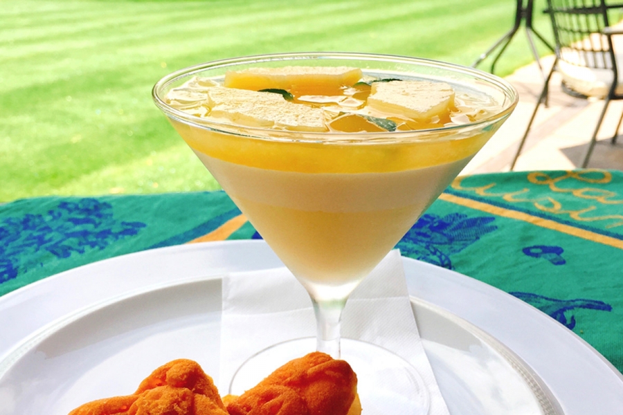 キラキラと黄金色に輝くパイナップルの果肉とパイナップルジュレ。