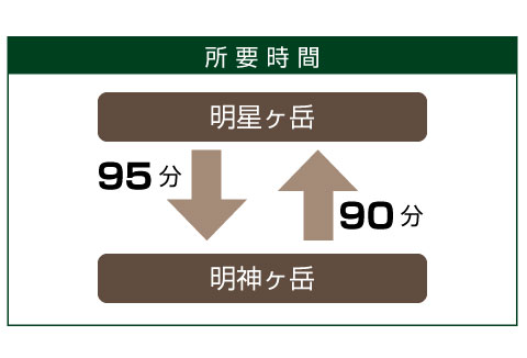 | アクセス | 明星ヶ岳から登る場合 ・小田原駅から湖尻・桃源台行きバス35分 「宮城野橋」下車、明星ヶ岳登り口へ 明神ヶ岳から登る場合 ・小田原駅から湖尻・桃源台行きバス40分 「宮城野支所前」下車、明神ヶ岳登り口へ |