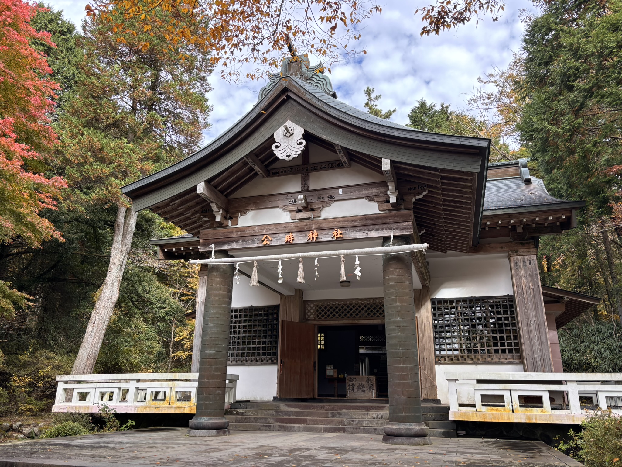 自然豊かな湖畔の道を歩き、パワースポットとして知られる九頭龍神社に向かいます。