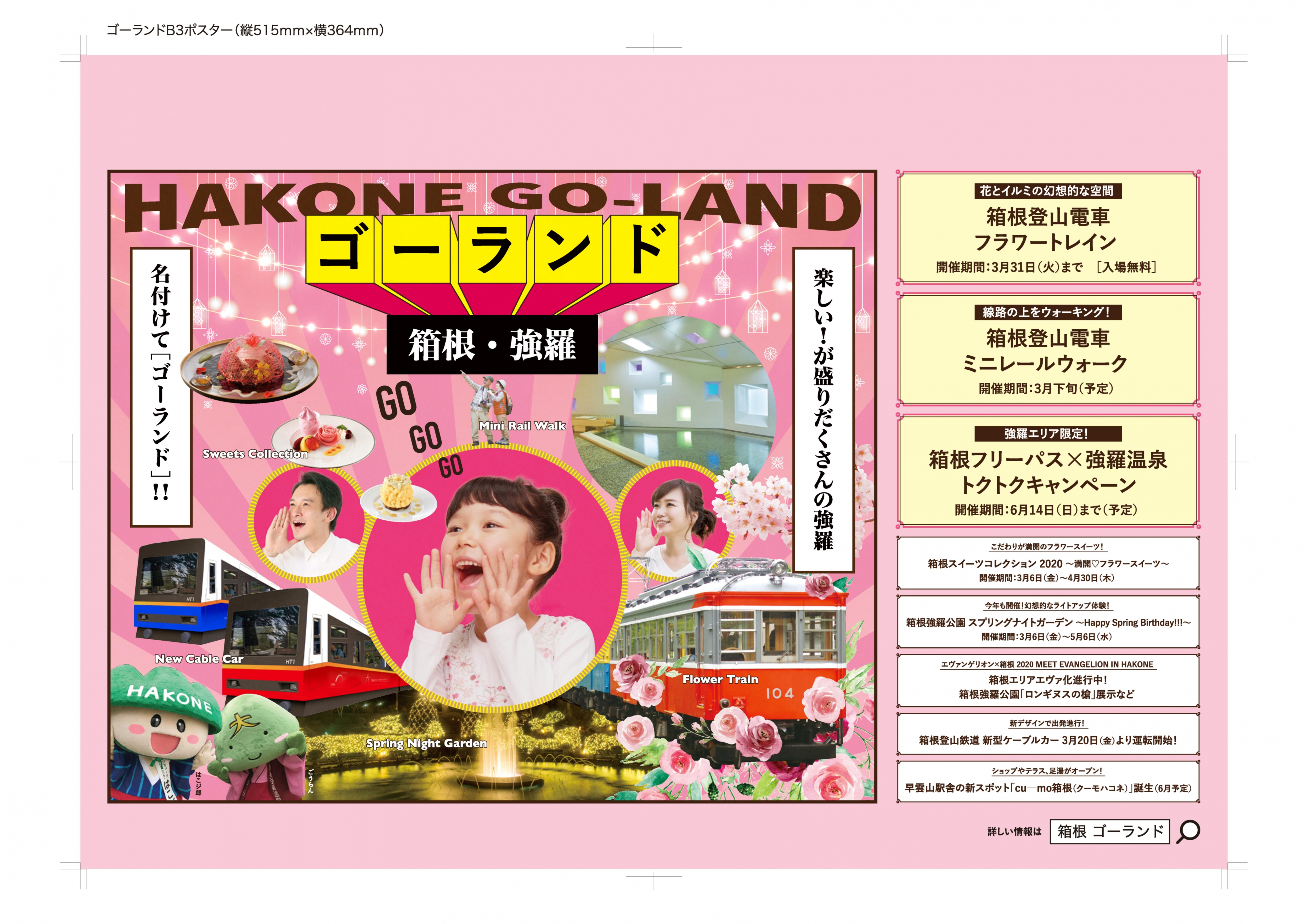 小田急グループの小田急箱根ホールディングス株式会社と、箱根強羅観光協会は2020年 2月 1日(土)から 6月 14日 (日)まで、強羅活性化プロジェクト「HAKONE GO-LAND」を実施いたします。 本プロジェクトでは、2019年10月12日に発生した台風19号の影響により箱根登山鉄道の箱根湯本駅~強羅駅間が運休している中ではありますが、本年3月20日の新型ケーブルカーの運転開始や6月には早雲山駅舎のリニューアル を予定しており、期間限定の体験イベントやおトクなキャンペーンなど、 幅広い層のお客さまに楽しんでいただけるバ ラエティ豊かなコンテンツを取り揃え、箱根・強羅の旅の特別な思い出づくりをお手伝いしていきます。