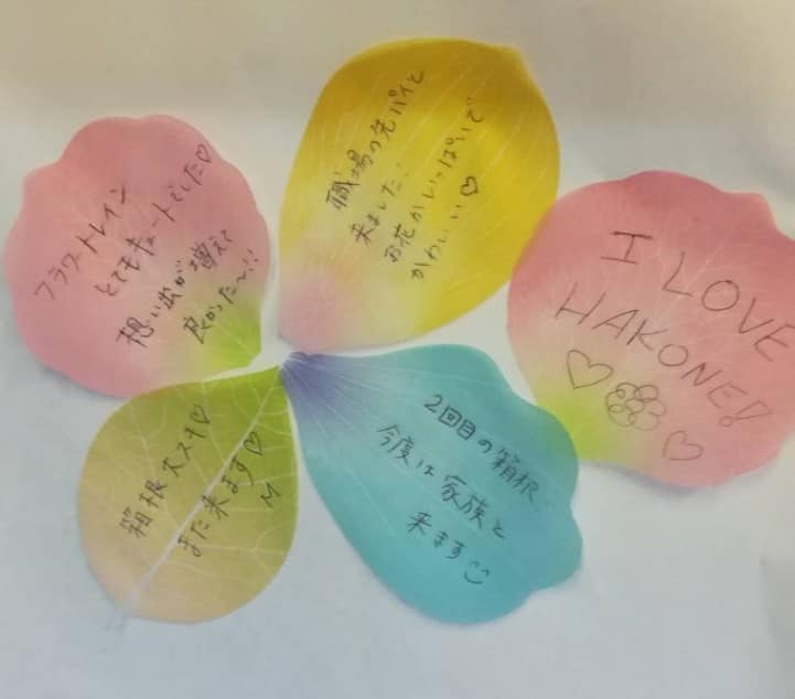 さらに、車内ではLEDによるライトアップで明るく照らされるとともに、花や葉っぱの形のカードに思い思いのメッセージを書き込むことができます!入場は無料です