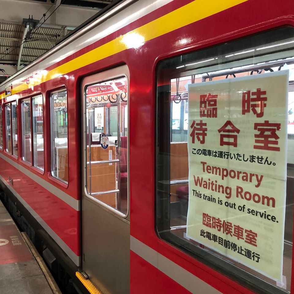 駅のホームで電車を待っていると、せっかく温泉で暖まった身体も冷えてしまうこともあるかと思います。ですが!フワフワの椅子で暖房完備の臨時待合室(電車)を御用意させていただいております。