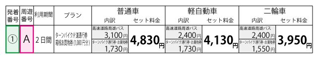※通行券の販売価格は【普通車・軽自動車】730円、【二輪車(125cc超)】550円で、いずれも通常価格です。