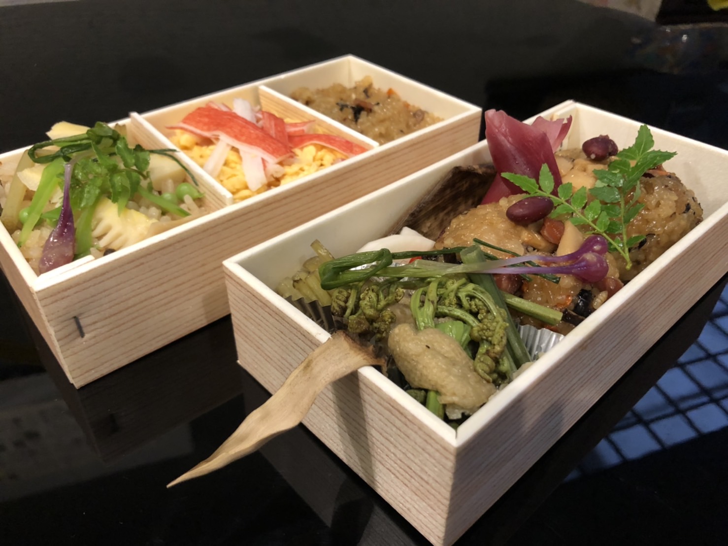 具だくさんタケノコおこわ・あっさりみょうが寿司・山菜ごはん
