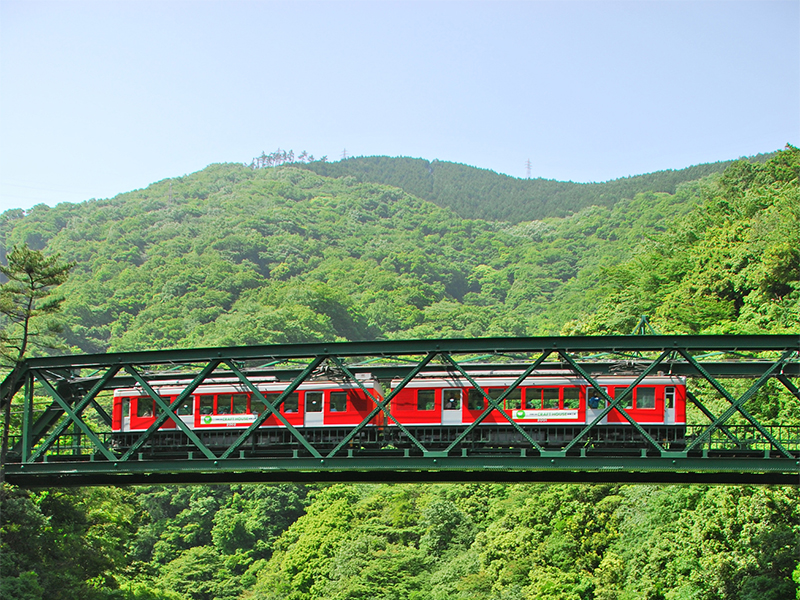 箱根登山鉄道の塔ノ沢駅~出山信号場間にある鉄橋橋。橋の長さは61m、高さ43Mあり、沿線の中でも屈指の景観スポットです。