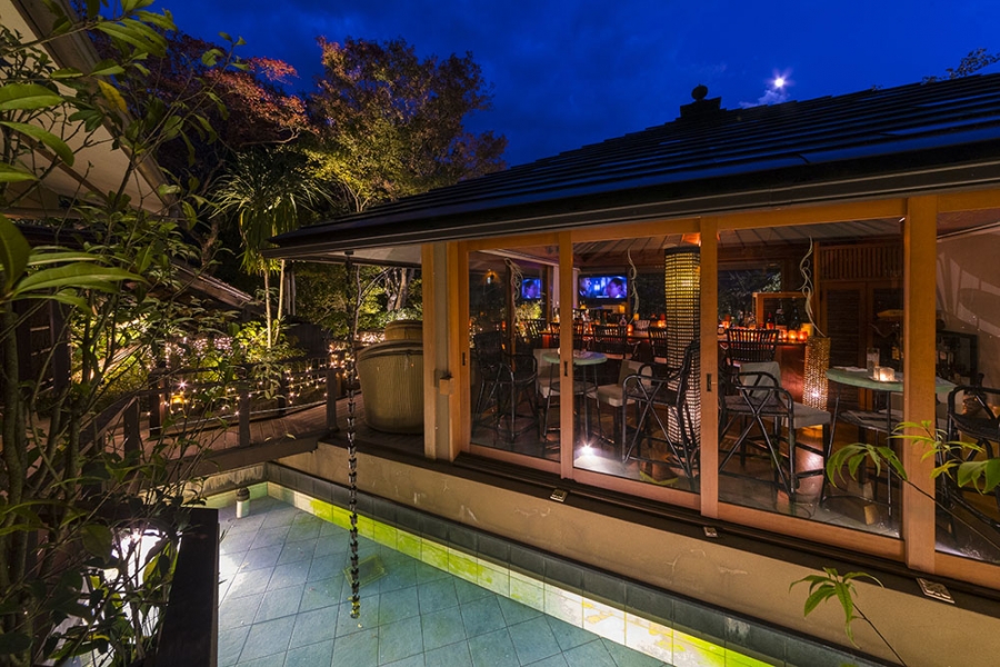 ライトアップされた渓谷の木々を望みながらカクテルをお楽しみいただけます。