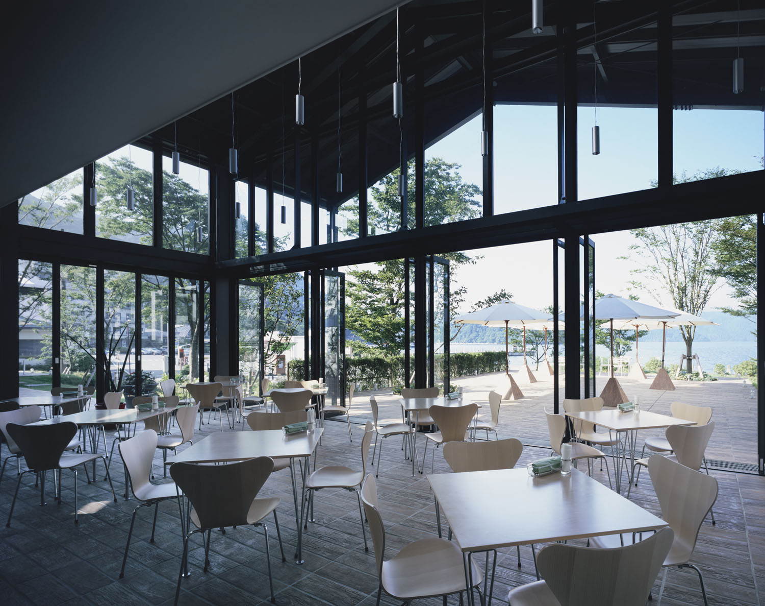 イタリアンレストラン ラ・テラッツァ 芦ノ湖、玉村豊男ライフアートミュージアム、いずれもテラスで芦ノ湖を眺めながら、Wi-Fiをご利用いただけます。