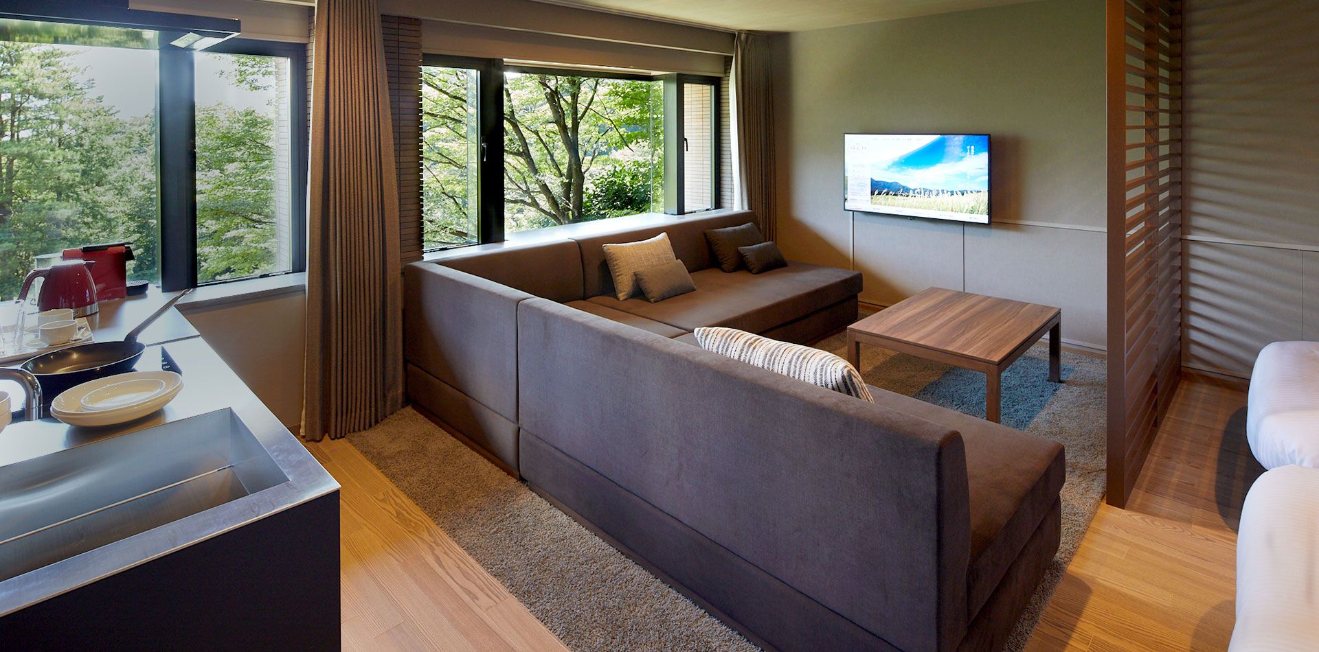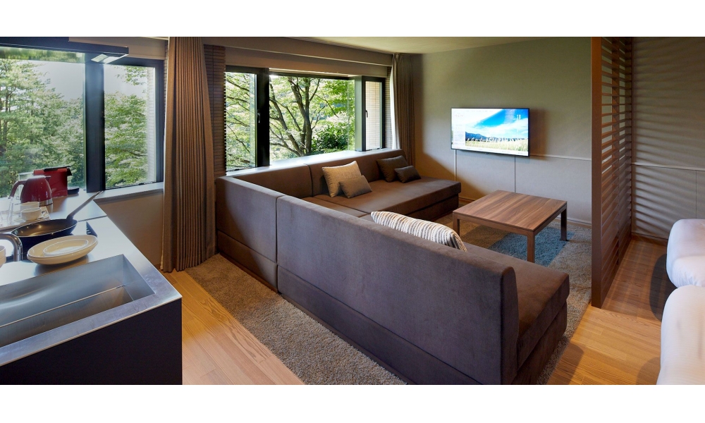 お部屋では、箱根山々の景色が見え、時折自然に癒されながらテレワークは、いかがでしょうか。お仕事の後は、温泉に入りごゆっくりと。