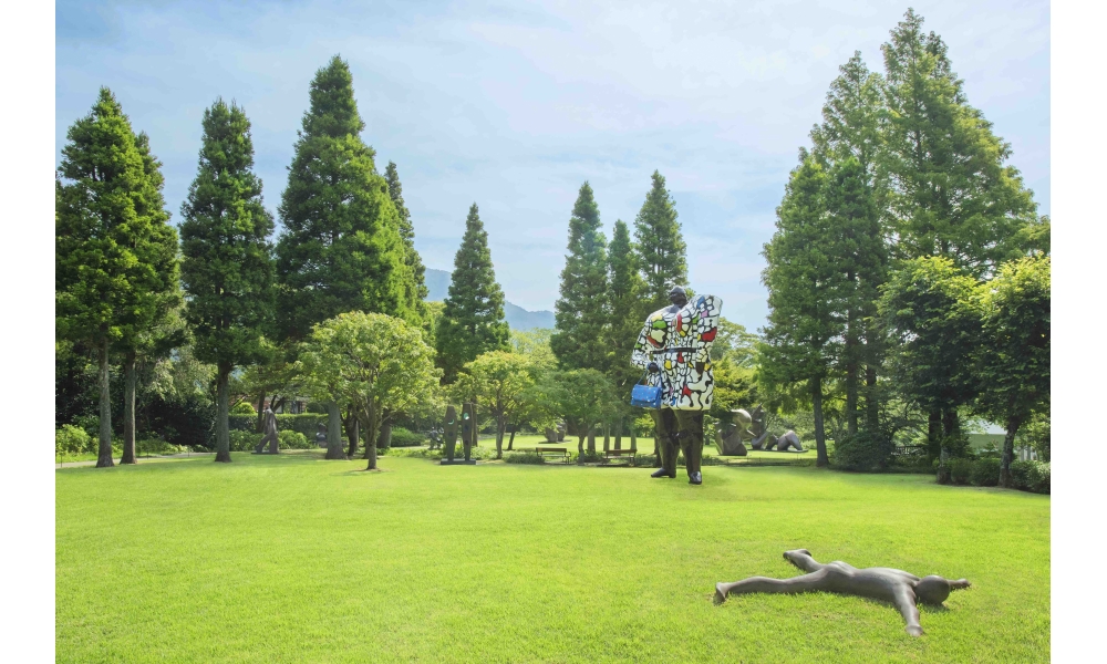 1969年に開館した日本初の野外美術館。7万㎡の緑の中に、約120点もの作品を展示。また所蔵作品300点余りを順次公開しているピカソ館や、子供たちが楽しくアートとふれあえる体験型作品、敷地内から湧き出る源泉を活用した温泉足湯など、大人から子供までゆっくり過ごすことができます。