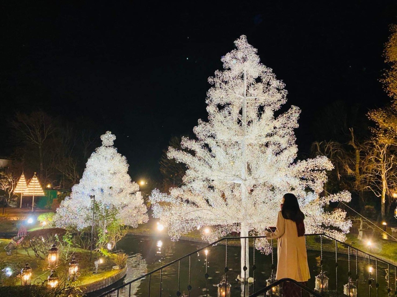 12月1日から25日までの期間、夕方16時頃から水辺や庭園一面にランタンやキャンドルホルダーの優しく、あたたかな光が灯ります。