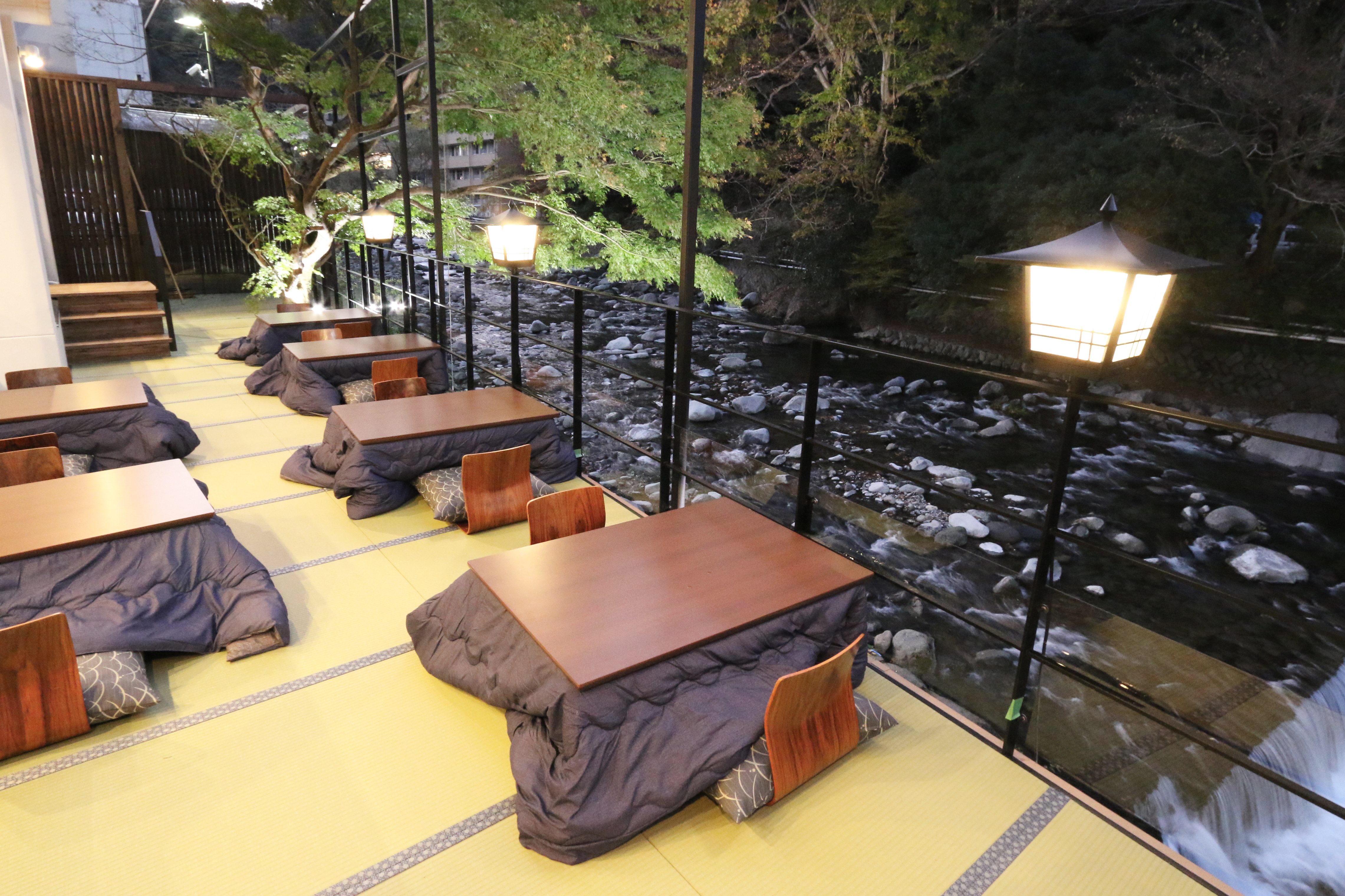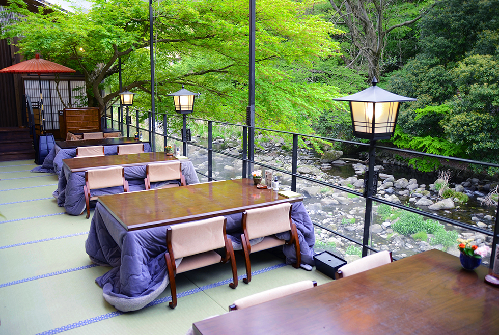 箱根唯一となる川床は箱根の四季を感じる特別な空間。牛肉と野菜を割り下で煮込んだ濃厚な味わいの牛なべを是非ご堪能下さい。