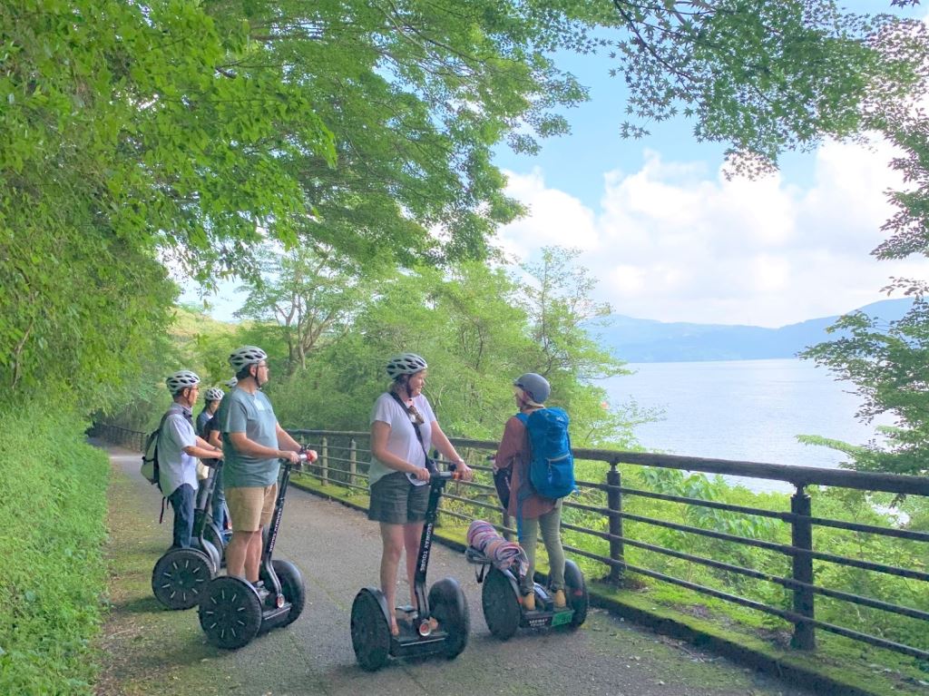 九頭龍神社を擁する自然豊かな森をガイドと一緒に巡るセグウェイツアー。操作はとても簡単。この爽快感に癒されること間違いなし!