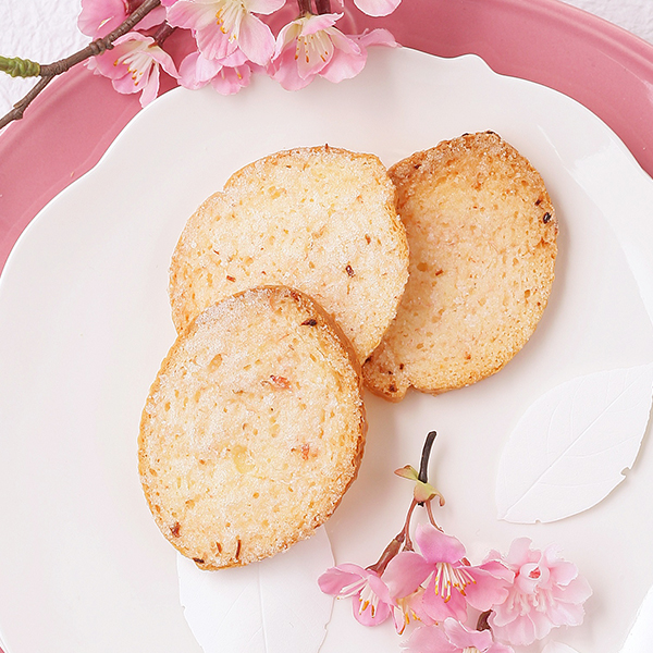 塩漬けにした国産のサクラ花を刻み、バターに練りこんで焼き上げました。