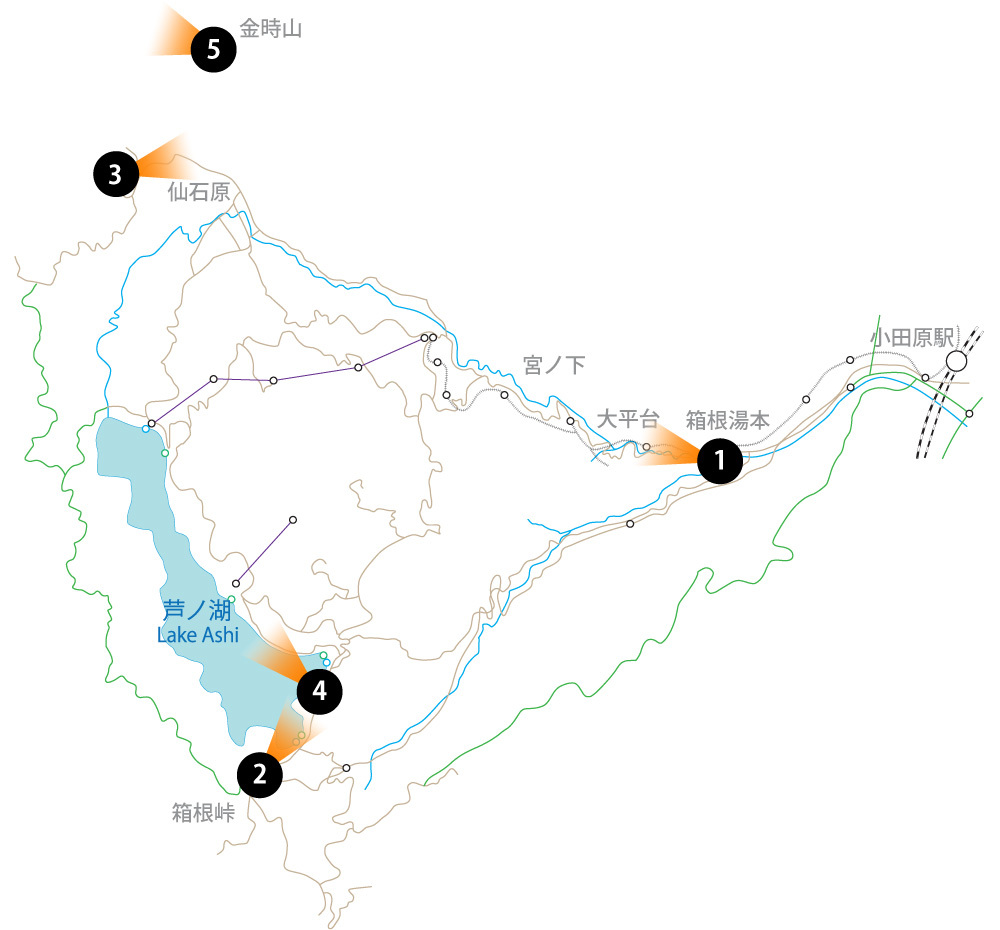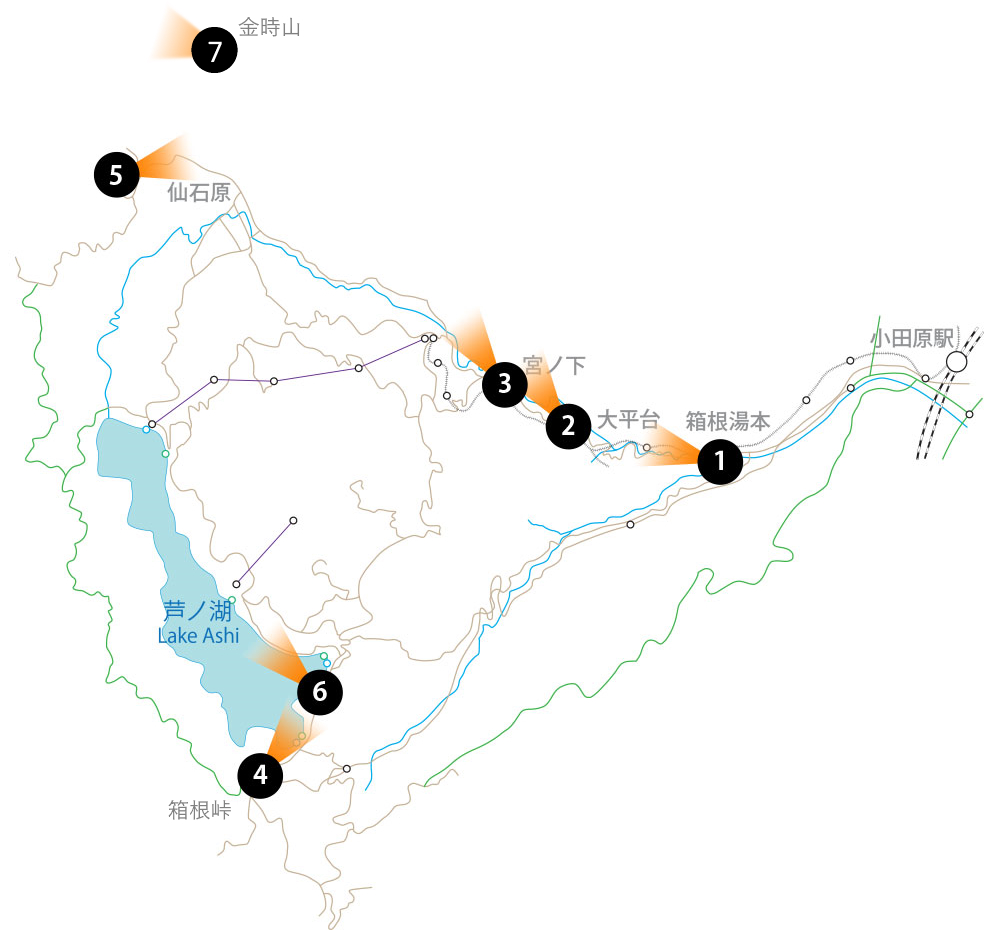 (湯本・箱根峠・乙女峠・芦ノ湖・金時山)