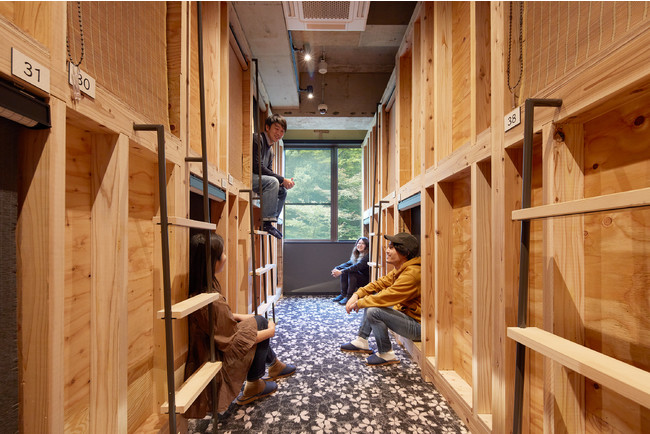 温泉は、源泉かけ流し露天風呂2つと伊豆青石を使用した内湯2つを有します。お部屋は、旅館タイプの客室6部屋、キャビンタイプの籠床46床。その他、自由に寛げるラウンジやキッチンなどを備えております。