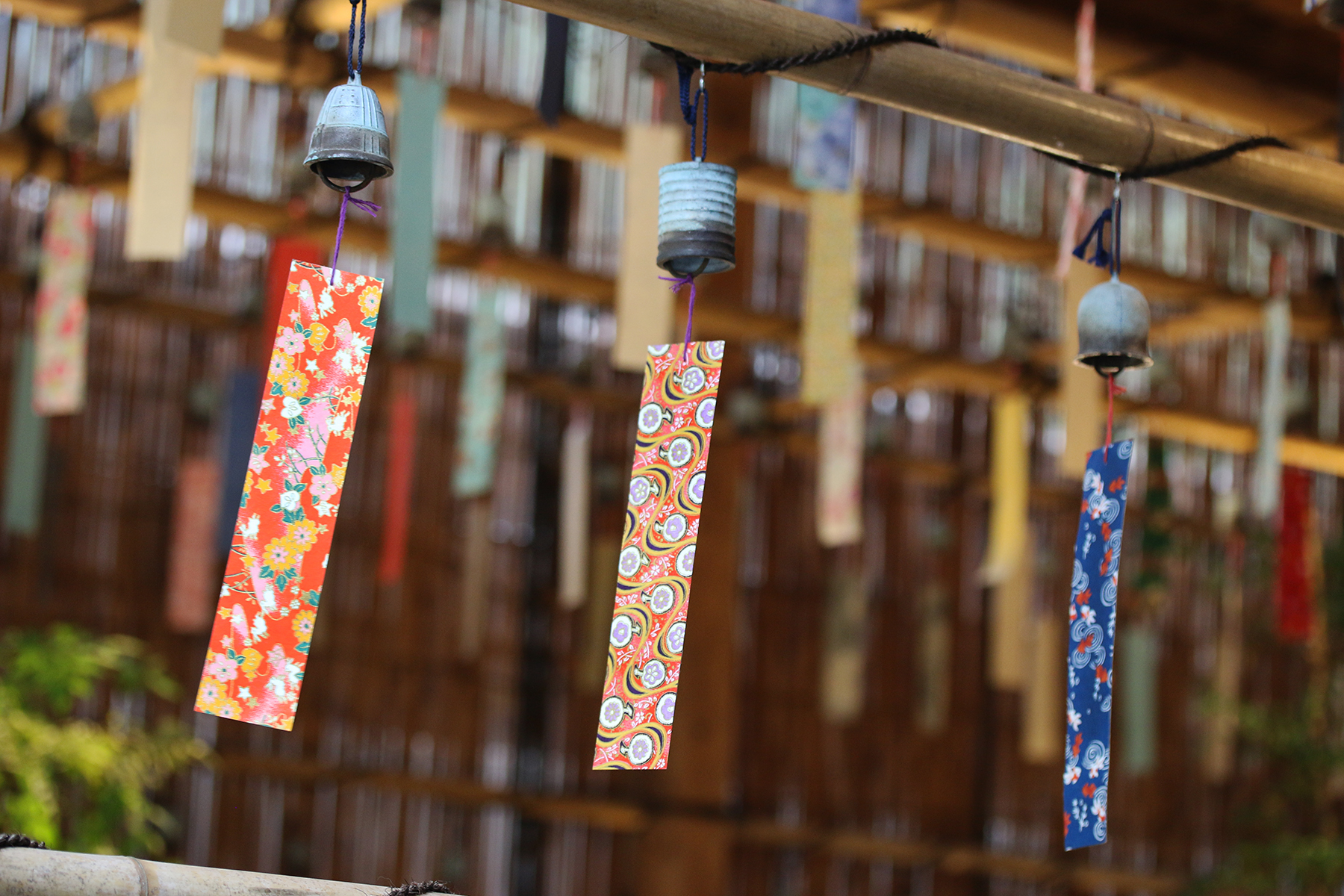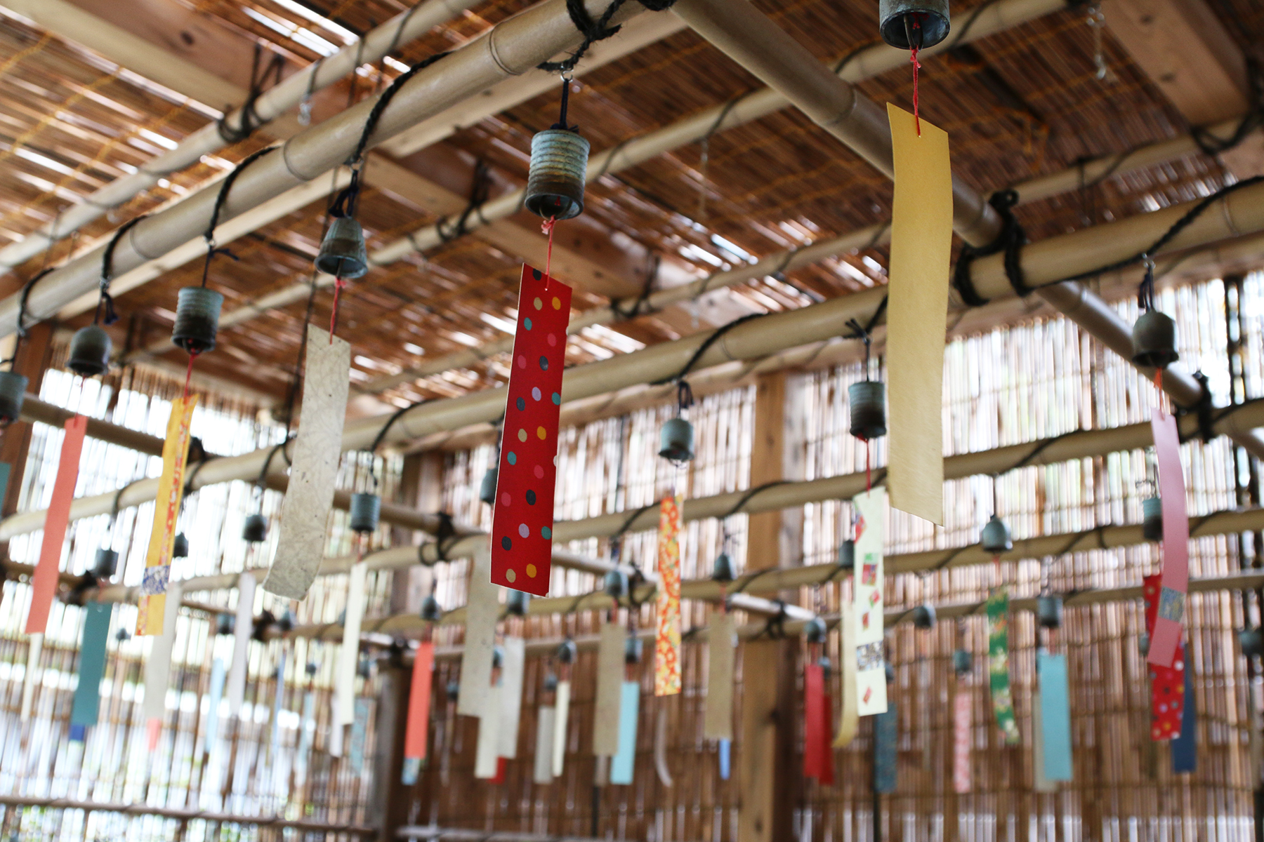 「箱根風鈴まつり」では4種類の形の風鈴(松虫・小田原提灯・鈴虫・釣鐘)を飾り付けています。形によってそれぞれ違う音色が織りなすハーモニーをお楽しみください。