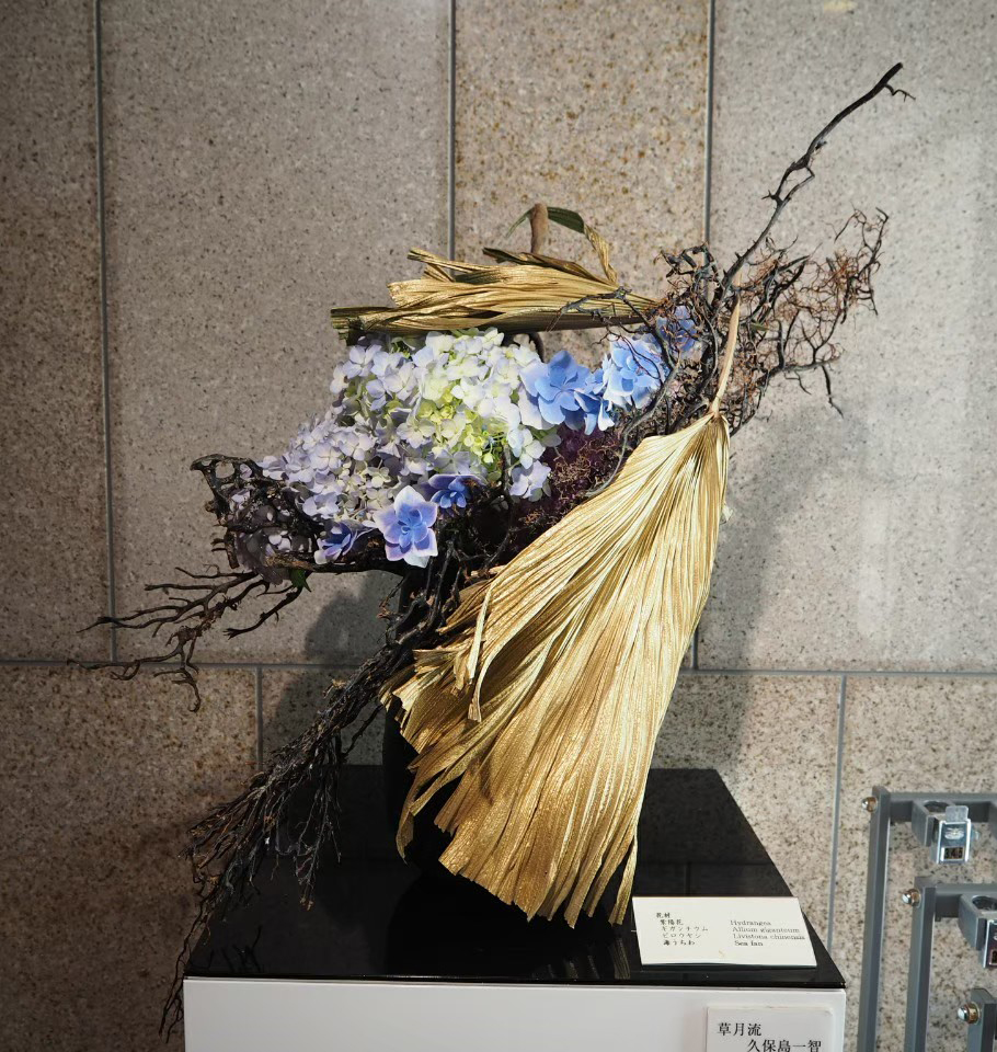時には流木や自作の花器を用い、美術作品から着想を得た独創性あふれる作品が、来館者をお迎えしています。