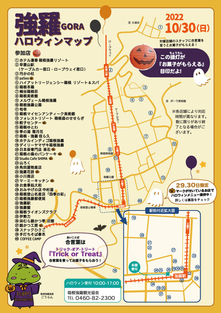 ハロウインMAPにある参加店40軒で合言葉を言ってお菓子をもらっちゃおう♬