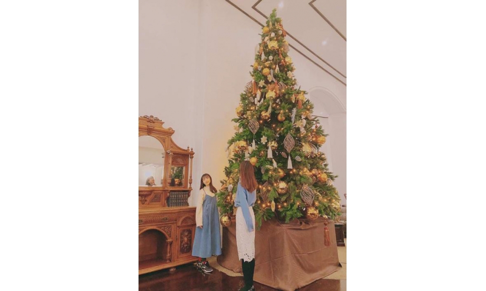 マントルピースに炎が灯った、ホテルラウンジ入り口に、高さ6mの巨大なクリスマスツリーを設置。また、ホテルエントランス前の駐車場にもイルミネーションを施し、クリスマスの雰囲気を演出しております。