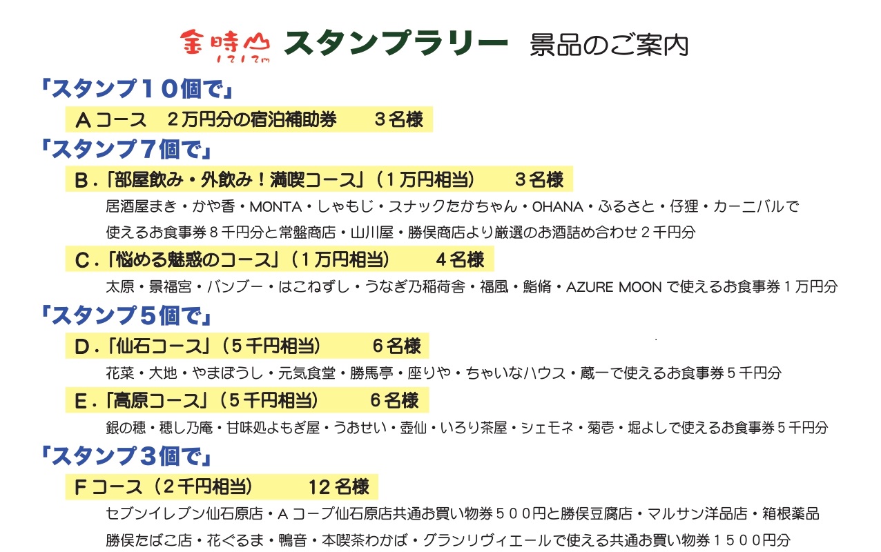 賞品内容などは各店舗で配布するスタンプシートをご利用ください。