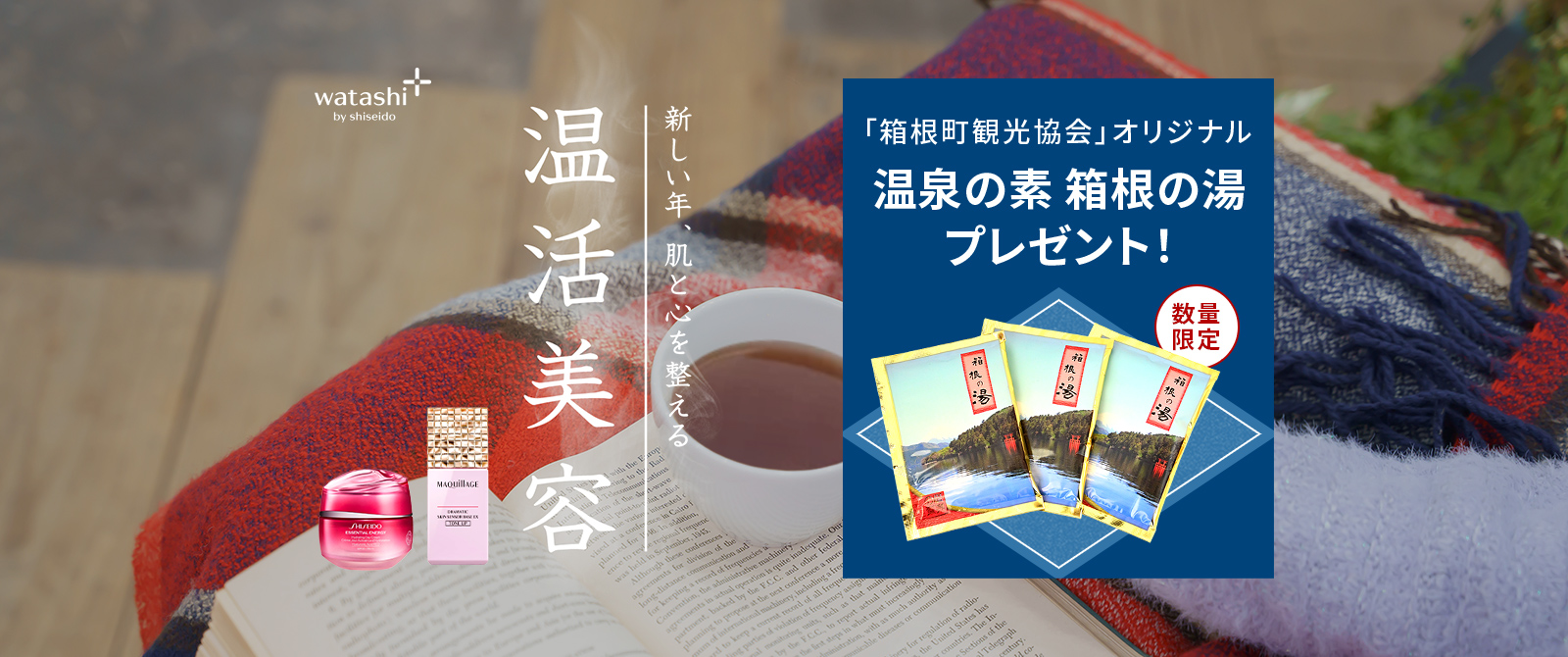 2023年2月1日(水)から資生堂公式オンラインショップ「ワタシプラス」の“冬の温活美容”キャンペーンで、化粧品の購入特典として「箱根の湯」が数量限定の先着順でプレゼントされます。