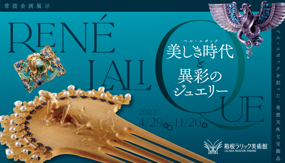 第一次世界大戦勃発によって幕を閉じるまでの約30年間、人びとが豊かさと束の間の平和を享受したこの時代に、ルネ・ラリック(1860-1945)はジュエリー作家として輝かしい実績を残した。ベル・エポックの象徴でもある、フランスを代表する大女優サラ・ベルナールにジュエリーを認められ、1900年、40歳で迎えたパリ万博では見事グランプリを獲得。それまでジュエリーの素材としては稀であった半貴石や獣角などを取り入れ、伝統にとらわれない宝飾品を創造することに熱意を燃やした。誰も見たことのないものを作ろうと常に新しいものに目を向けていたラリックにとって、諸文化が入り混じり、奇抜で斬新な芸術を柔軟に受け入れる“ベル・エポック”は、彼の創作意欲を刺激しアイデアを生み出す宝庫だったのだ。そんな美しき時代(ベル・エポック)に異彩を放った、ラリックの独創的なジュエリーの数々をどうぞお楽しみください。