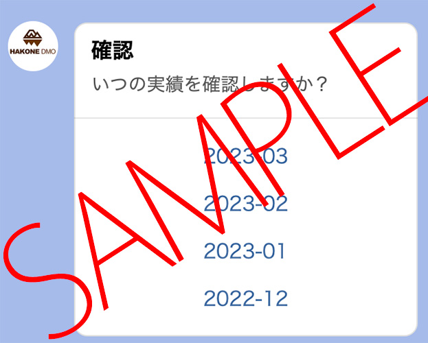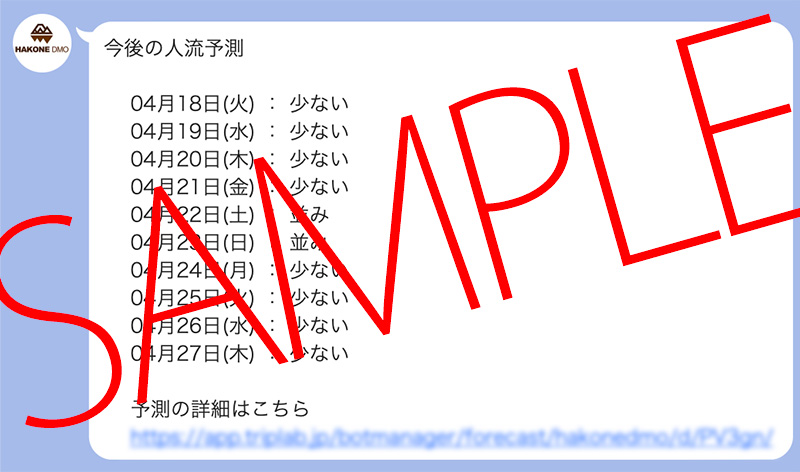 そこで、より幅広い箱根観光事業者様や住民の方を対象とし、各々の事業にご活用いただけるマーケティングデータをご提供し、データの価値を最大化していただけるよう、積極的かつ活用しやすい「LINE」を用いて、箱根町全体の状況を把握し事業に活かしていただける情報をご提供してまいります。