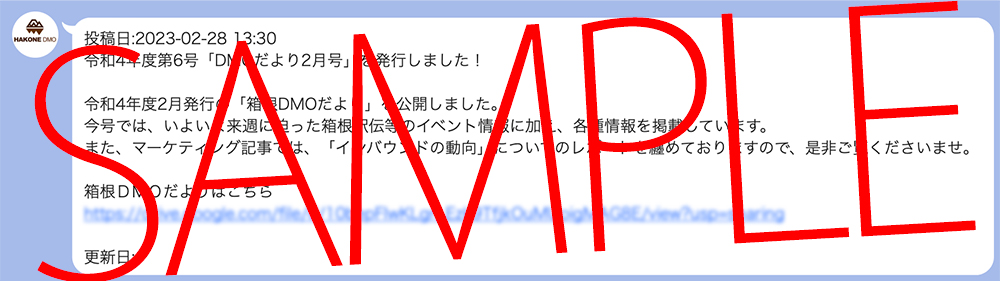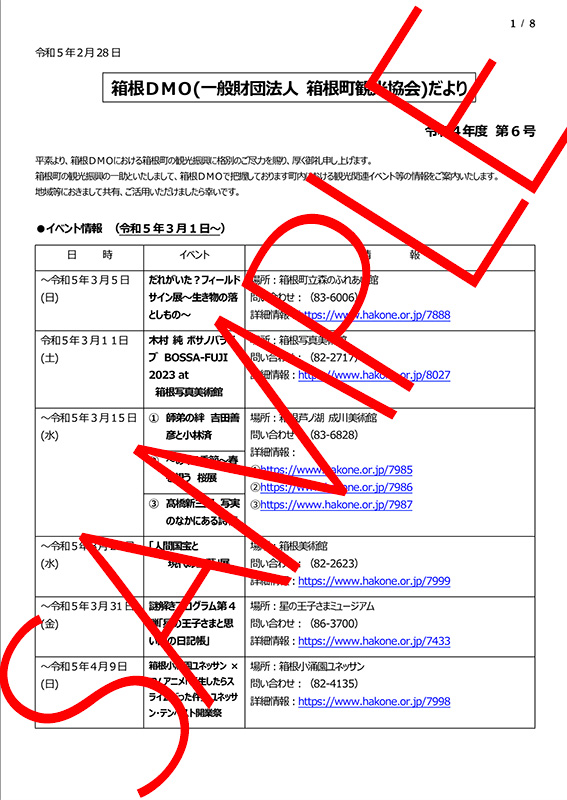 最近のトピックスでは、町内のイベント情報に加え、賛助会員様特典である「DMOだより」の配信や箱根DMOの活動など箱根全山では公開していない情報をご確認いただくことができます。
