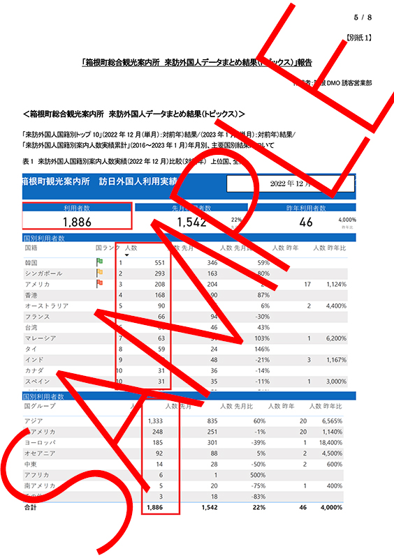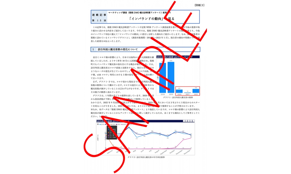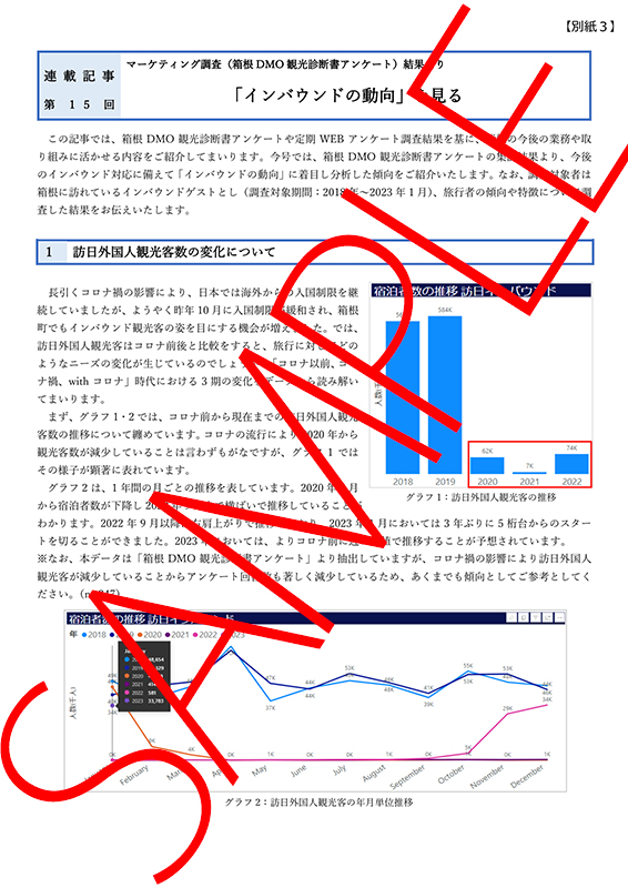 箱根DMOは2018年4月1日の設立より、各所に設置のご協力をいただいている「箱根DMO観光診断書アンケート」等から分析に必要なマーケティングデータが蓄積されてまいりました。