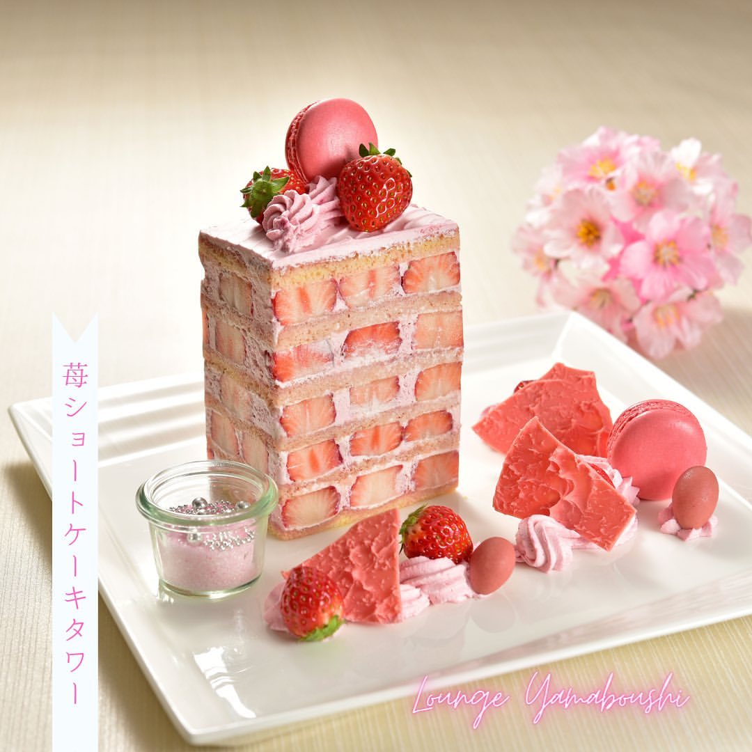 旧東海道の石畳をイメージし、苺クリームで5段サンドした苺尽くしのショートケーキです。 デコレーション用のグラニュー糖で見た目と味の変化をお楽しみいただけます。 アクセントのチョコレート、マカロン、あまおうアマンドとともおに味わう贅沢な幸せスイーツ!