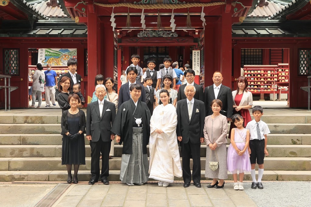 神社での挙式、旅館での食事会、そのあとは温泉に入り、夜はゆっくりみんなで想い出話をしながら