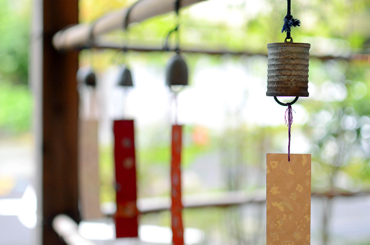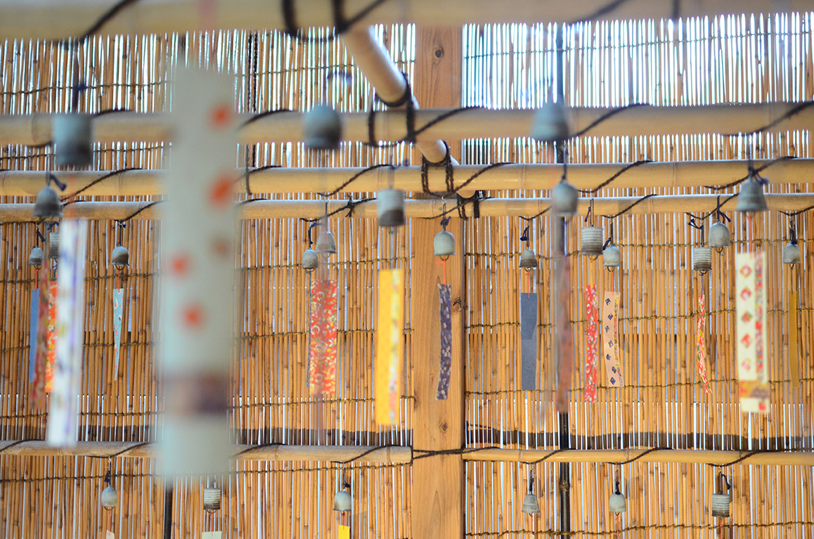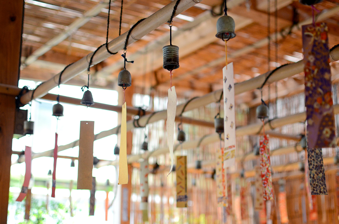 「箱根風鈴まつり」では4種類の形の風鈴(松虫・小田原提灯・鈴虫・釣鐘)を飾り付けています。形によってそれぞれ異なる音色が織りなすハーモニーをお楽しみください。