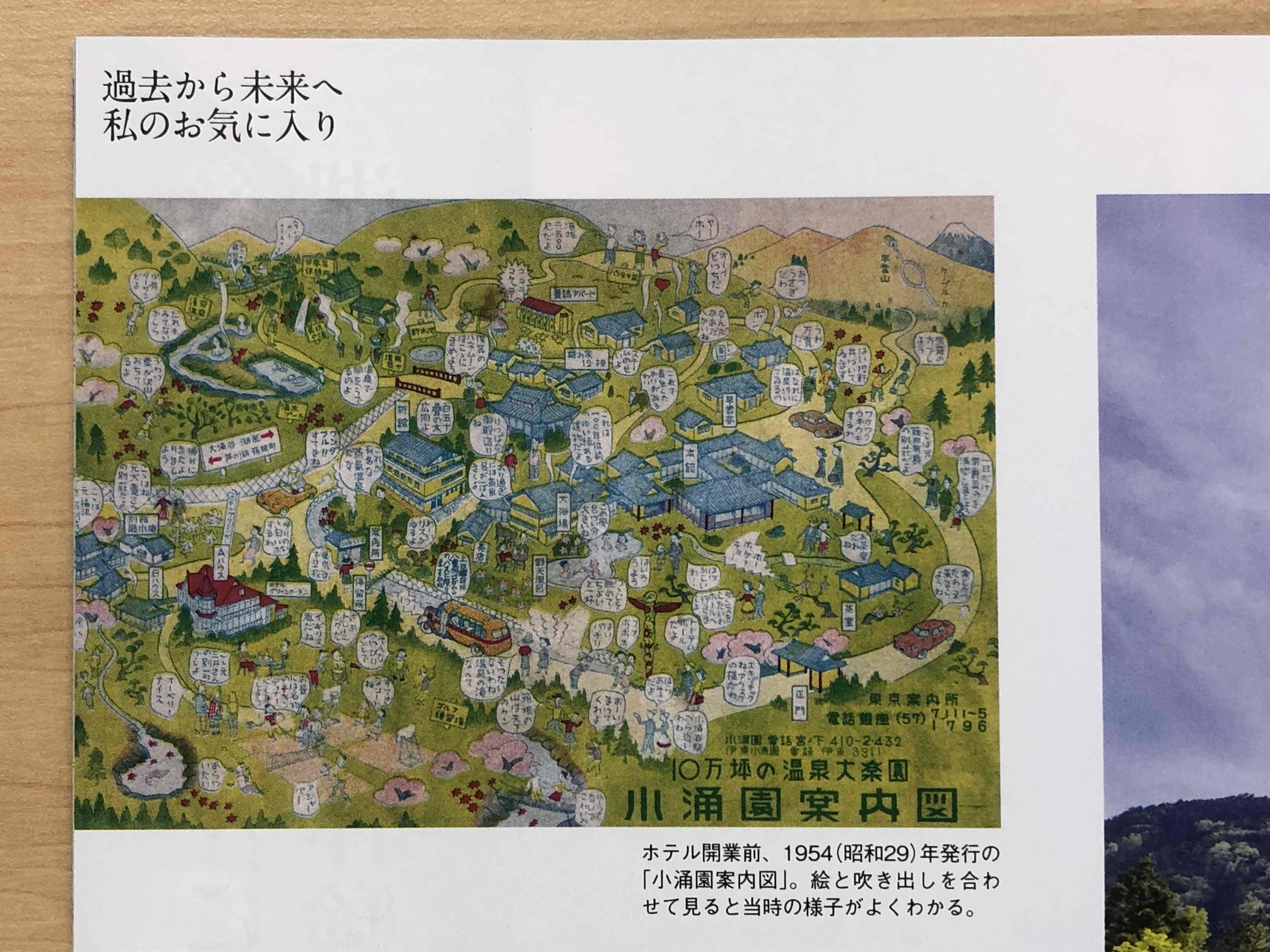巻頭特集「過去から未来へ 私のお気に入り」では、創業100周年を迎えた箱根ホテルをはじめ、7月12日にリゾートホテルとして新たにオープンする箱根ホテル小涌園、箱根からも近く、絶景を堪能できる十国峠など、歴史あるスポットの今と昔を写真とともに紹介しています。