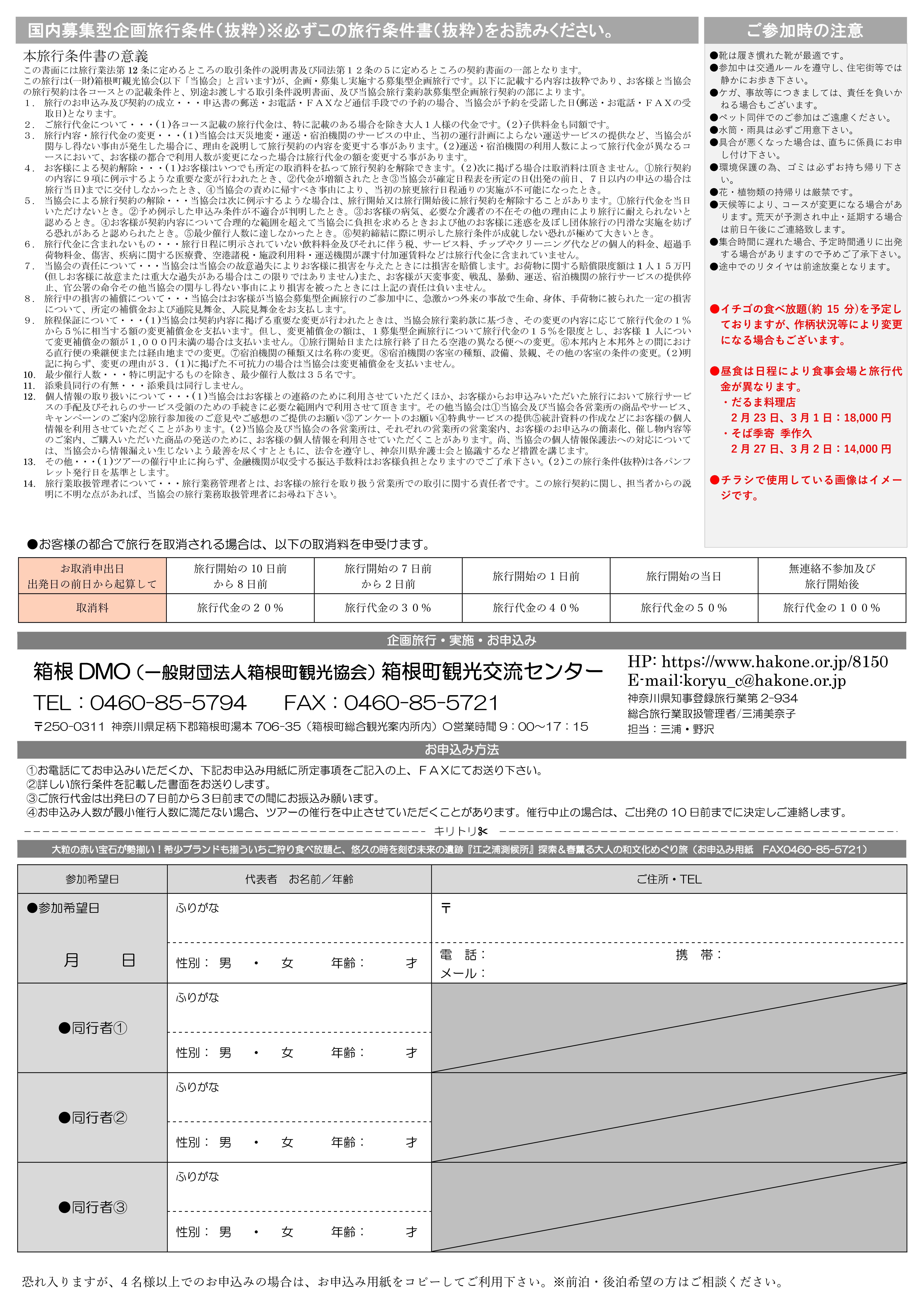 - 集合場所は小田原駅ミナカ小田原とJR松田駅北口からお選びいただけます。