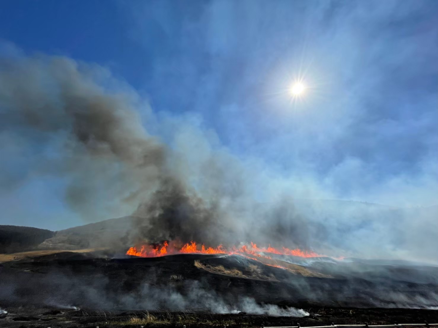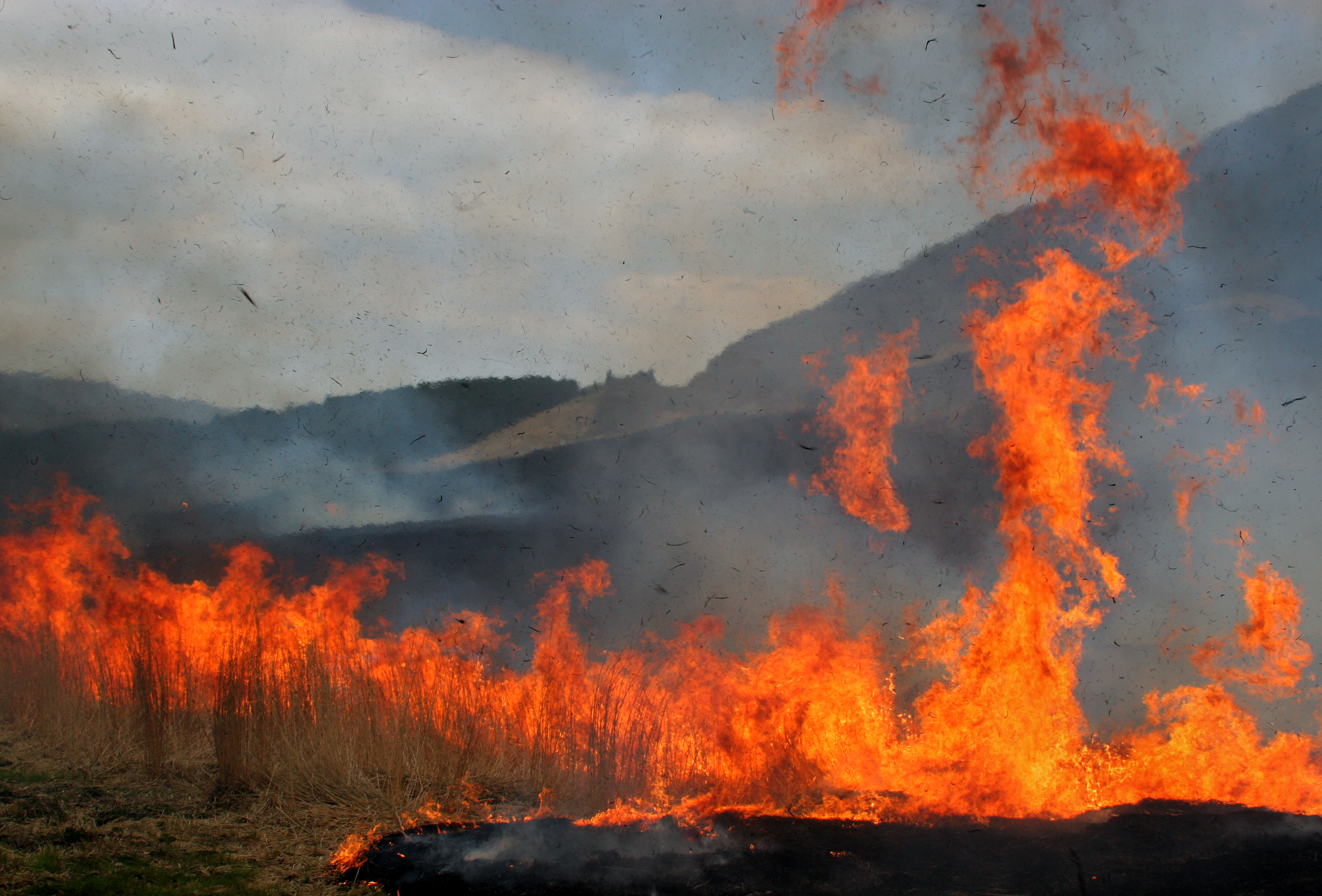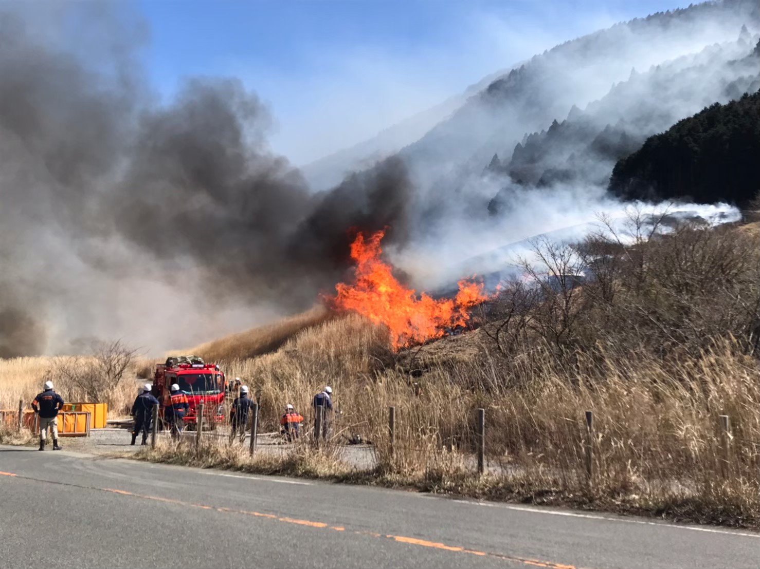 すすき草原は放置しておくと樹木が侵入して雑木林になってしまうため、平成元年(1989年)から毎年3月、風の無い日を選んで山焼きが行われています。1970年から火入れをしない時期が続いたため雑木に覆われてしまったこともあったようですが、今では山焼きのおかげで昔ながらの自然体系が復活し、美しいすすき草原を楽しむことができています。