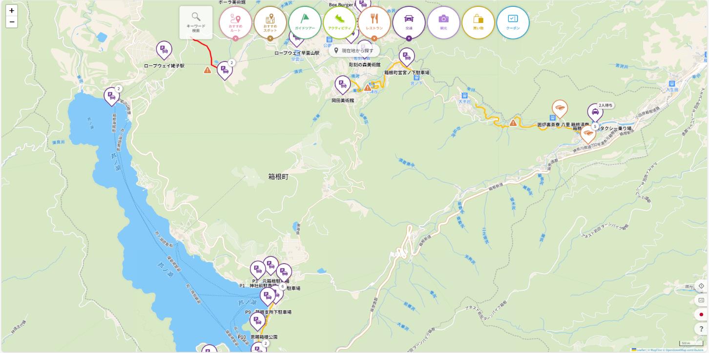 | リリース | 令和5年12月11日(月) ※渋滞情報、交通機関の運行状況、クーポン、箱根登山バス、伊豆箱根バス、箱根登山電車の時刻表と運行情報 令和6年1月31日(水) ※箱根登山ケーブルカー、箱根ロープウェイ、箱根海賊船、箱根芦ノ湖遊覧船の時刻表と運行情報 ※箱根観光デジタルマップ/観光データのAPI公開 |