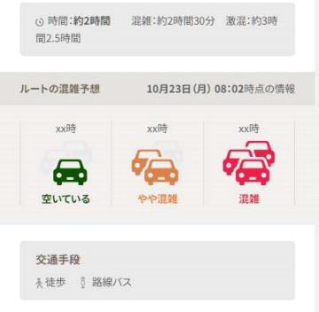 ・公共交通機関の交通情報 ・渋滞予測情報 ・駐車場混雑状況(満車・空車情報) |