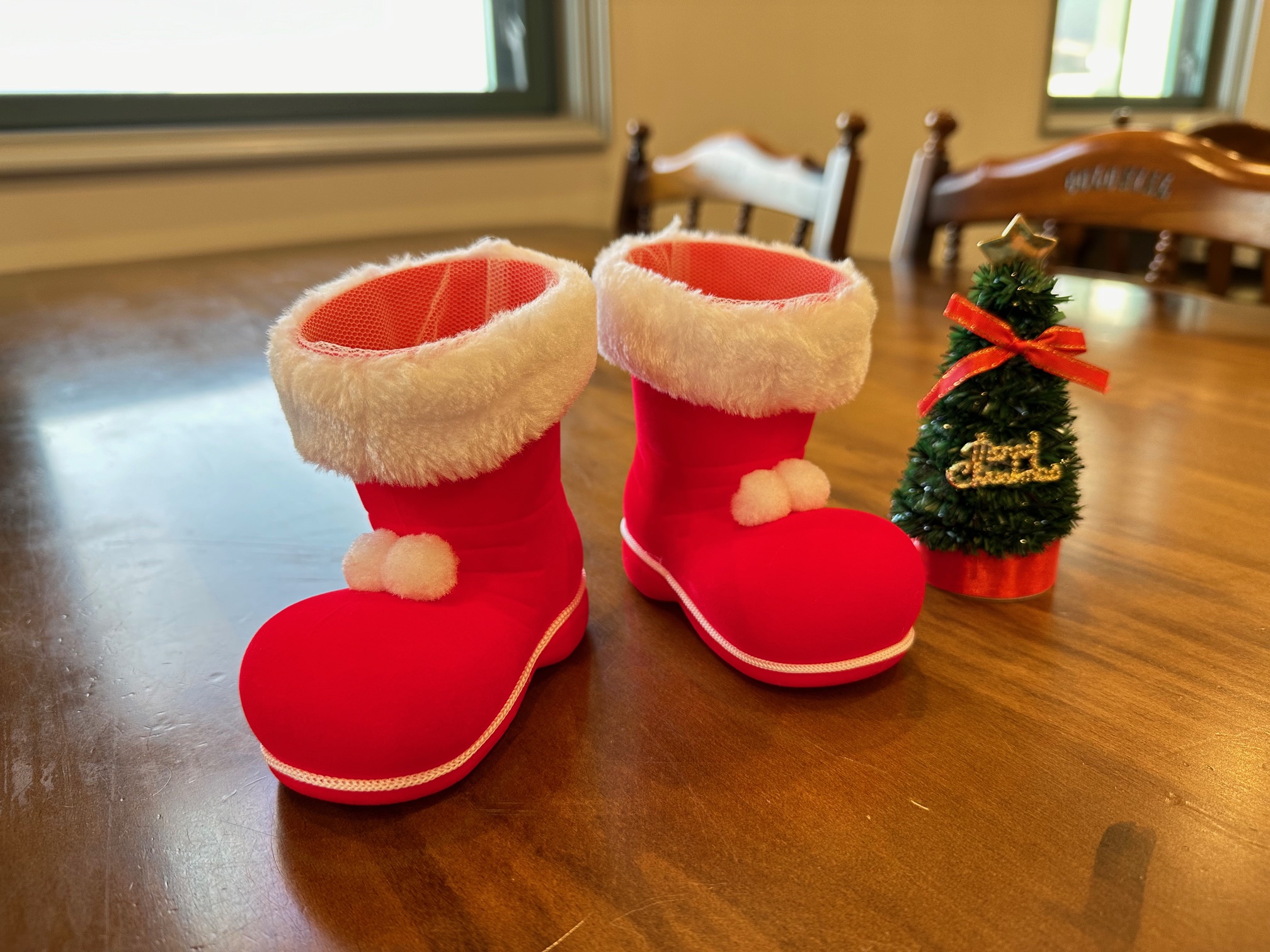 (発見したクリスマスブーツにお菓子を詰め合わせる)