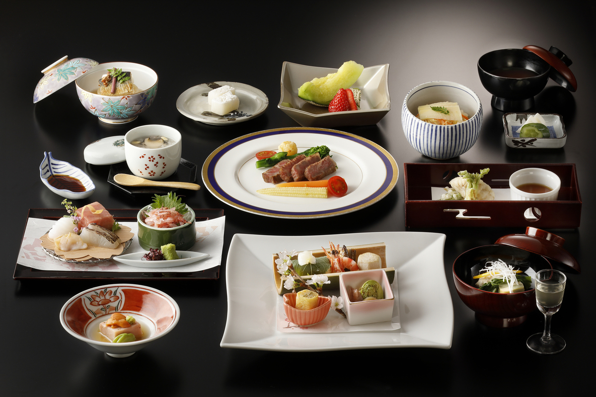 旬の山の幸、新鮮な海の幸を使用した、季節の「会席料理」。温かいものは温かく、冷たいものは冷たいまま一品一品、