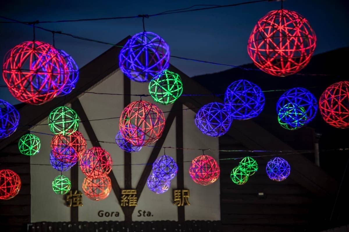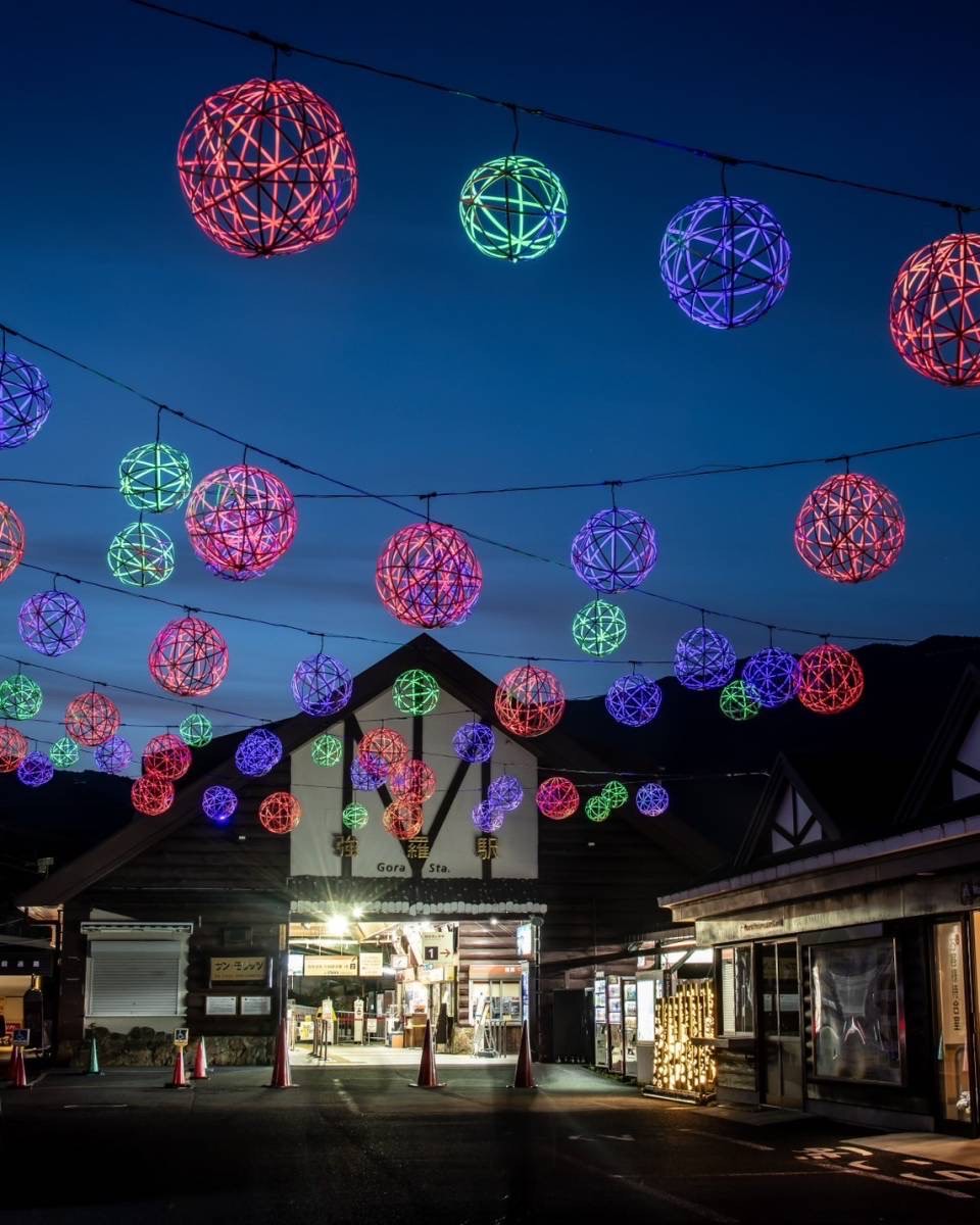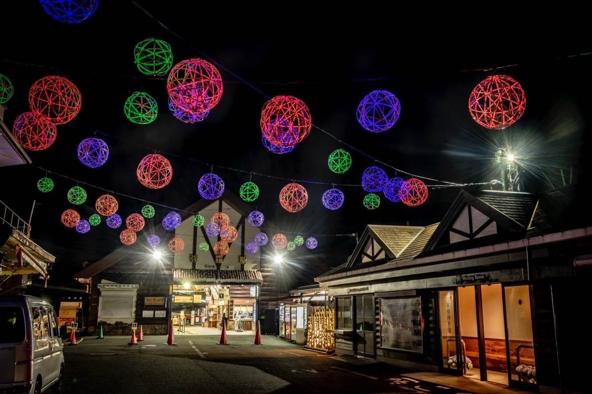6月11日(火)から当面の間、強羅駅前にて竹まりのライトアップを行います。