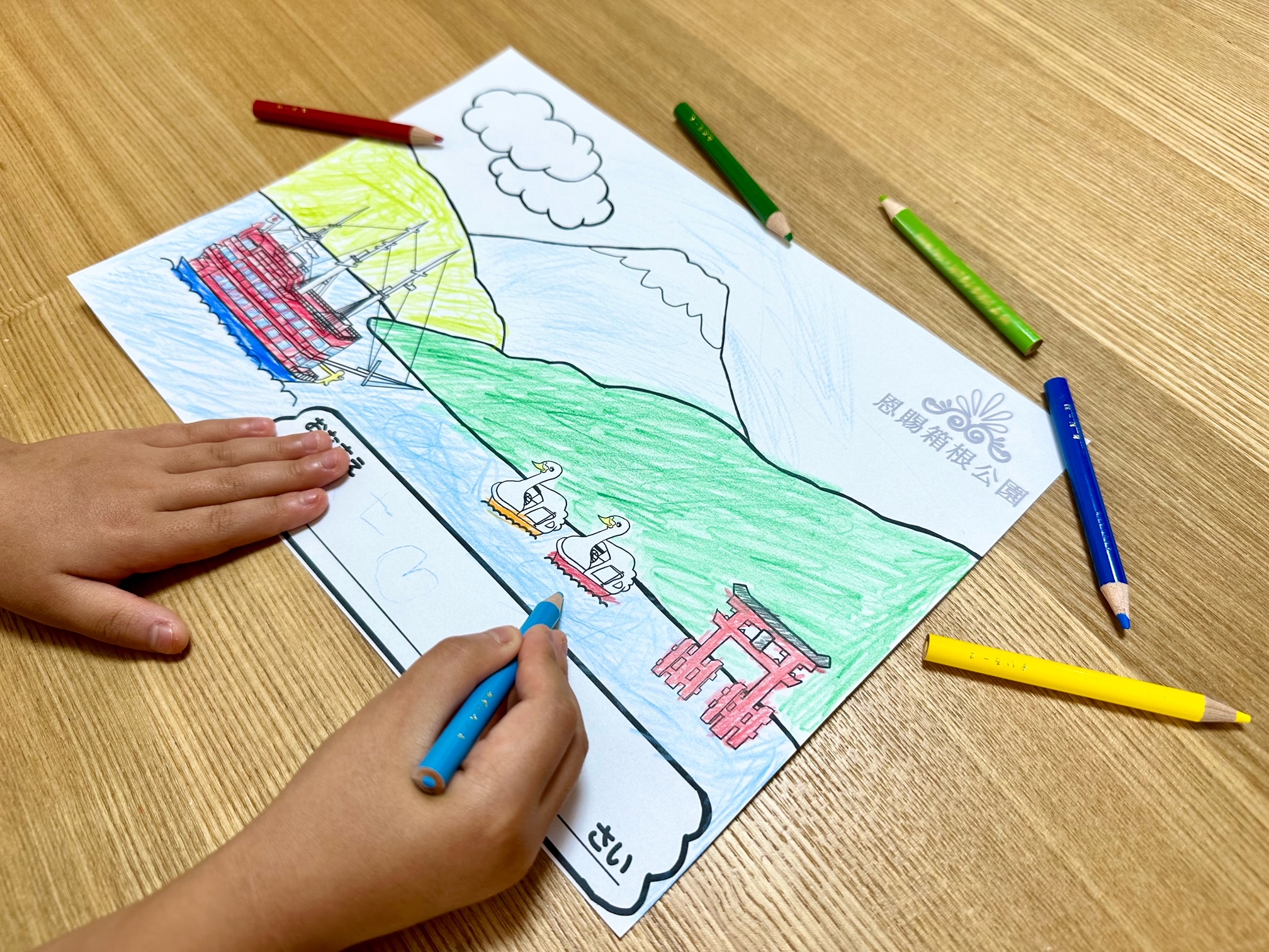 公園オリジナル塗り絵2種類と、色鉛筆(ミニ色鉛筆12本入り)1セットをプレゼント