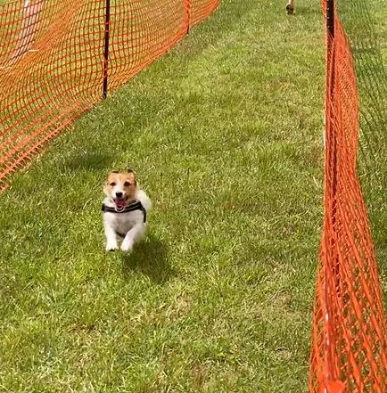 愛犬の50m走大会。スタート側と、ゴール側にそれぞれ飼い主様が分かれて頂き、ゴールから呼んで愛犬何秒でゴールできるか計測する競技の実施。