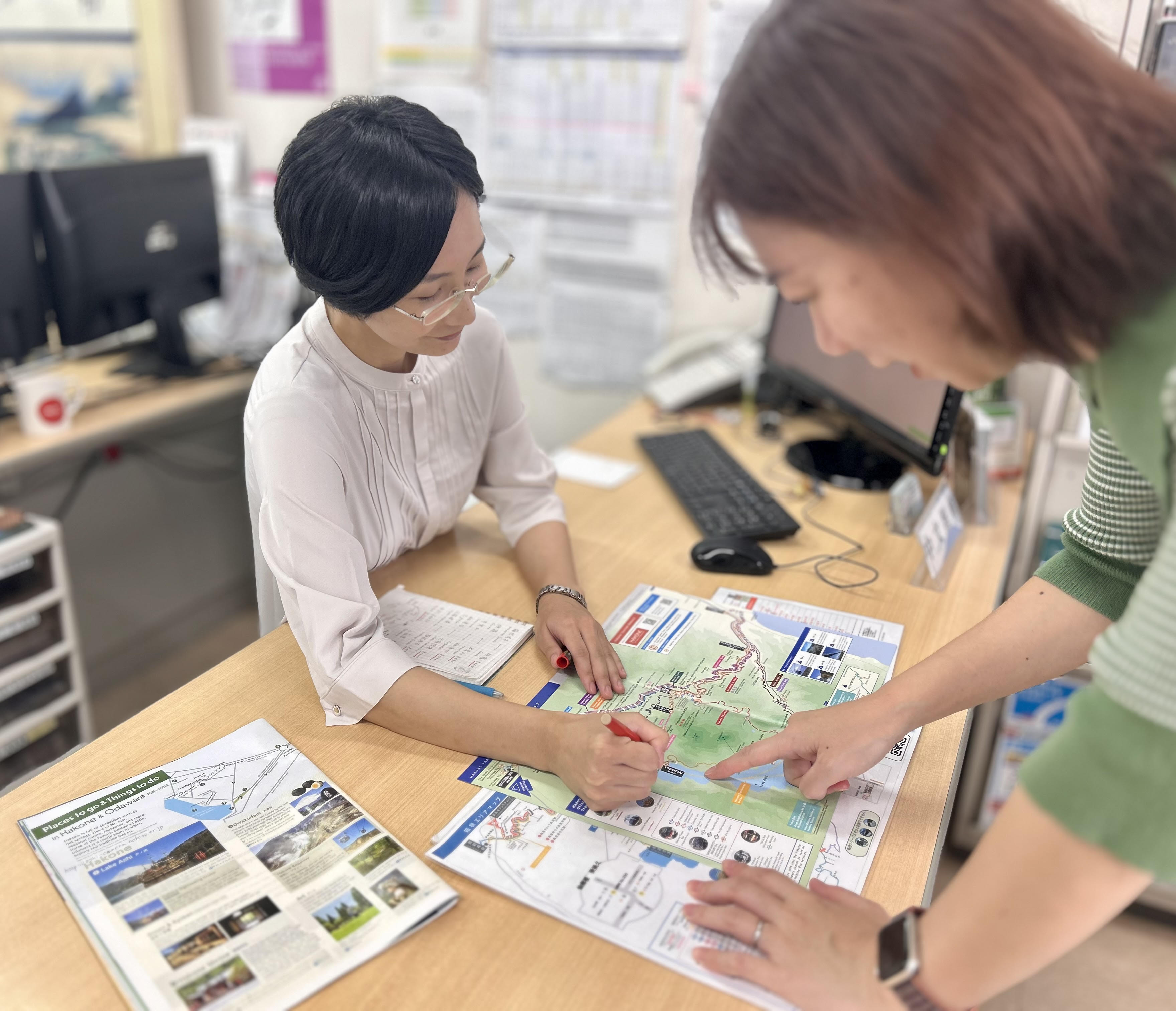 華やかな表舞台に出たい人も、陰で支えるのが得意な人も、それぞれの持ち場で輝けるのが箱根の魅力。私自身もこの観光案内所という場所でこれからもお客様の笑顔をつくっていけるよう、案内所のスタッフとして、そして「箱根で暮らすひとりの人」として、自分の中の情報や感性をアップデートし続けていきたいです。