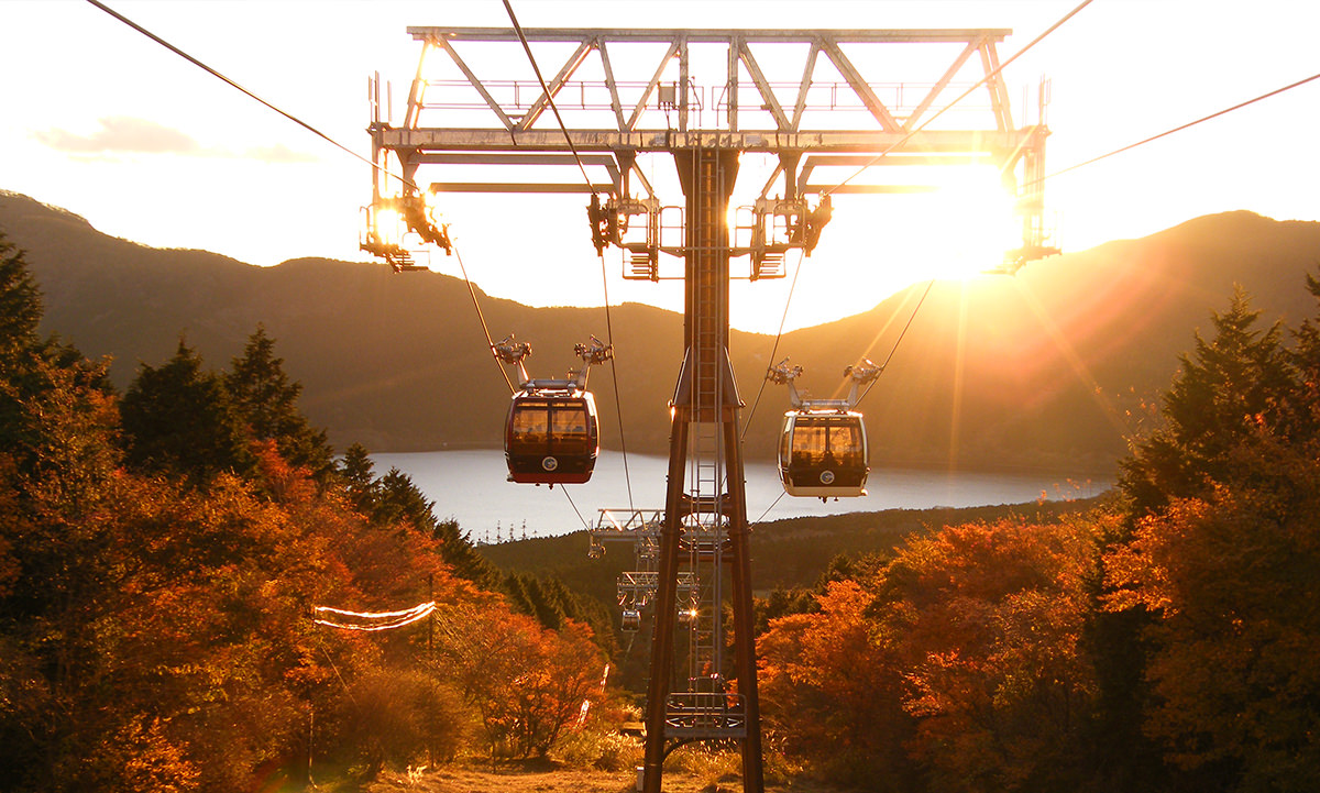 箱根ロープウェイは、早雲山駅から桃源台駅まで約4km の距離を、途中の大涌谷駅を経由して約30 分で結びます。標高の高い場所を進