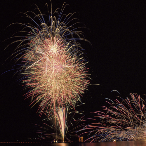 今年も箱根で冬の夜空を彩る冬景色花火大会が開催されます。まずは1月1日午前0時に、箱根神社の一番太鼓と共に新年を奉祝する花火(1,000発)が打ち上げられます。夜空と芦ノ湖を染める花火は、新年の幕開けを華やかに彩ります。